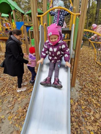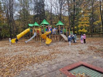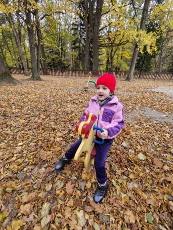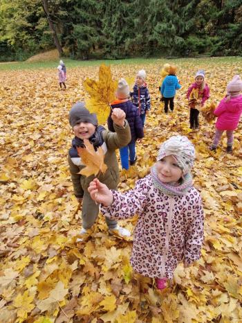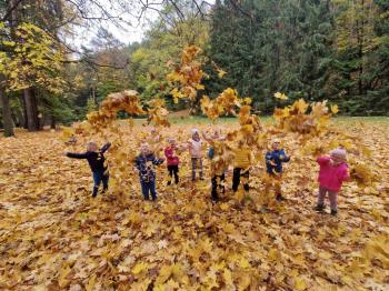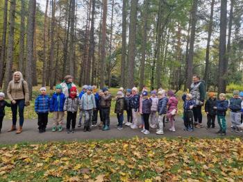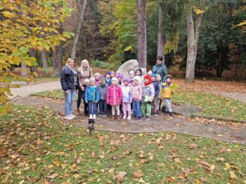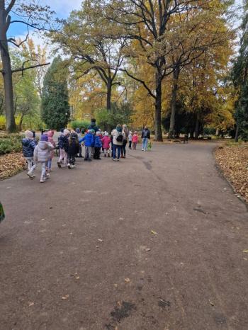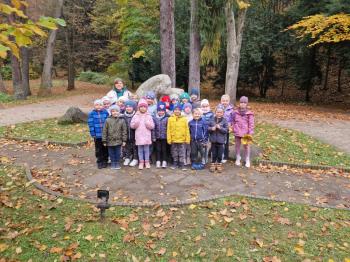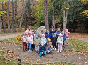 Wycieczka przedszkolaków z grup Pszczółki Leśne Duszki i Skrzaty do parku miejskiego w Gorlicach 22.10.2025