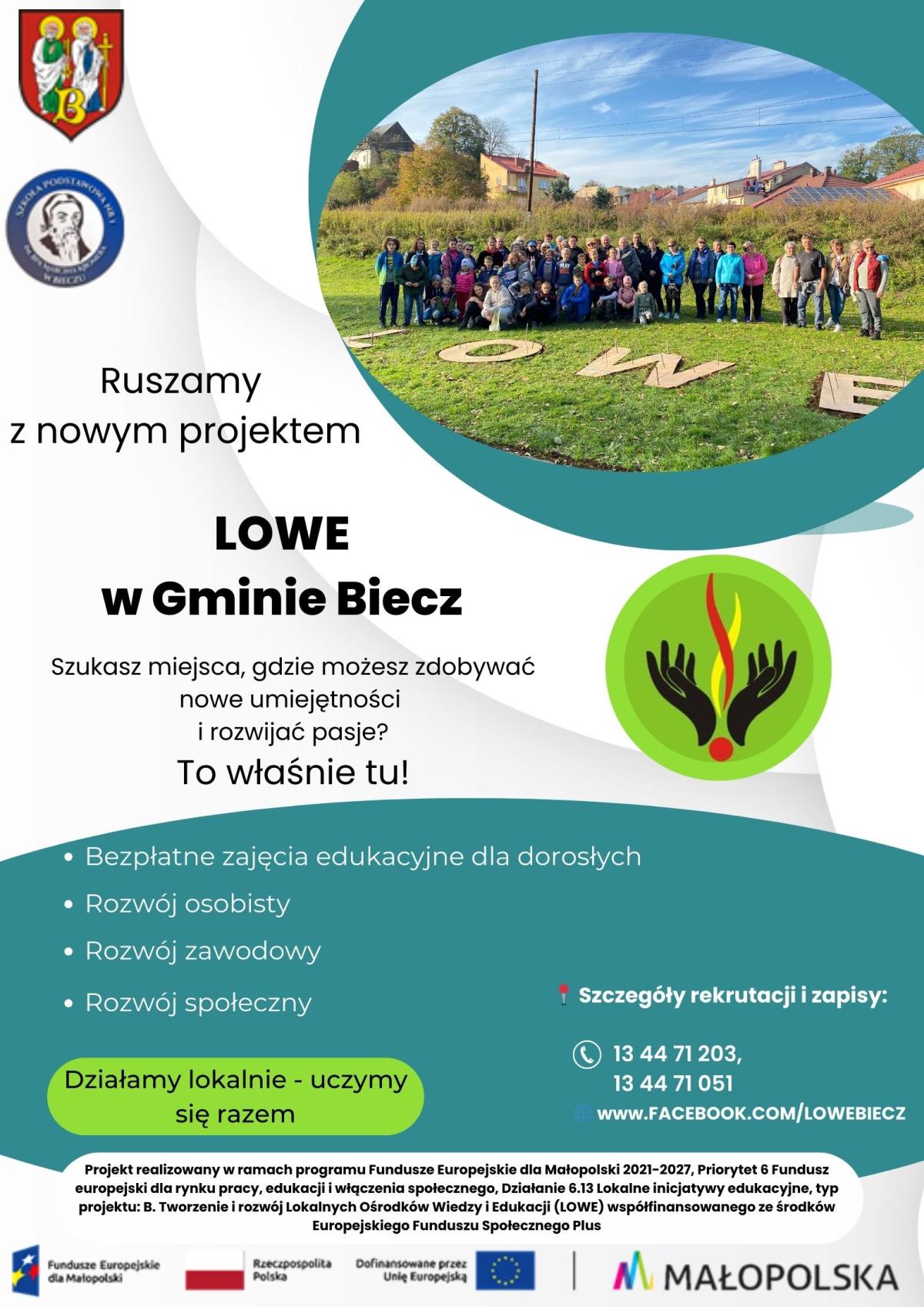 Z radością informujemy, że w Gminie Biecz rozpoczynamy realizację nowego projektu – LOWE w Gminie Biecz (Lokalny Ośrodek Wiedzy i Edukacji). Jest to inicjatywa skierowana do dorosłych mieszkańców naszej gminy, którzy pragną rozwijać swoje umiejętności, zdobywać nowe kompetencje i poszerzać swoją wiedzę w różnych obszarach.