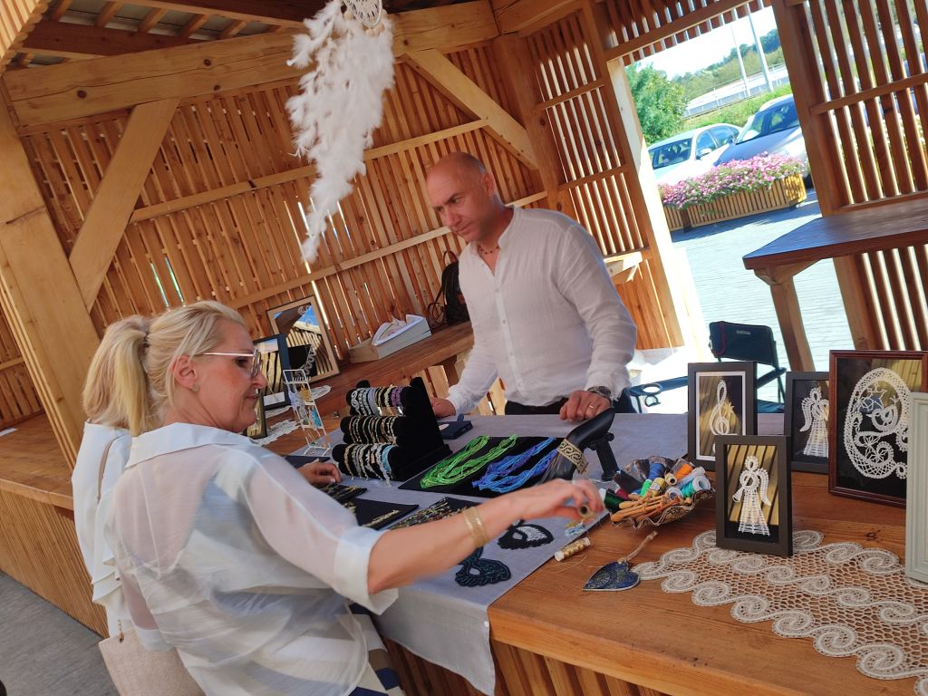 Integralną częścią Jarmarku były stoiska wystawców – lokalnych twórców, rękodzielników, pasjonatów i kół gospodyń wiejskich. Od drewnianych rzeźb, przez koronkę klockową, szkło, torebki, poduszki, wyroby z drewna po ręcznie robioną biżuterię – każdy mógł znaleźć coś unikalnego. Wśród wystawców były też Koła Gospodyń Wiejskich z regionalnymi przysmakami i stoiska indywidualne z chlebem, wędlinami czy serami góralskimi – nowości na naszym jarmarku.