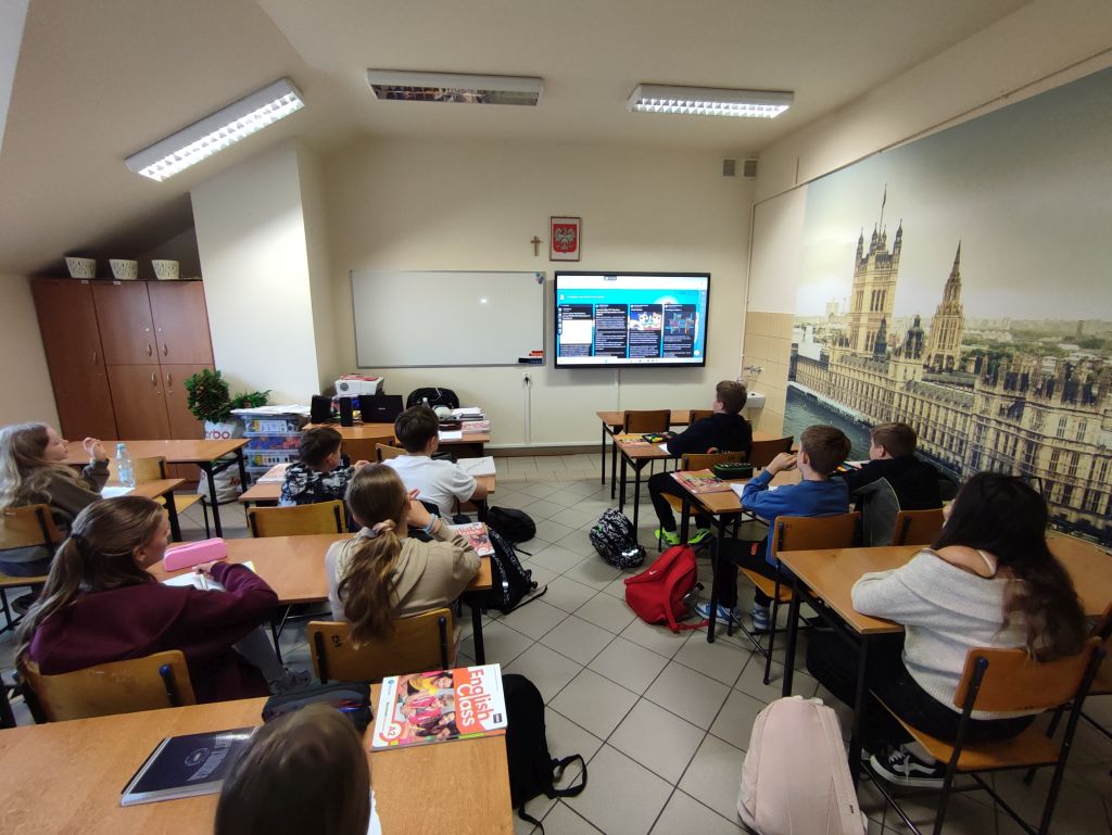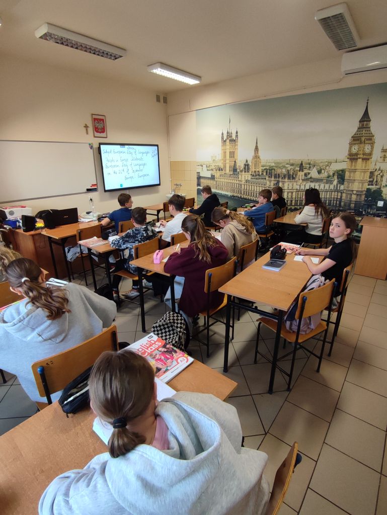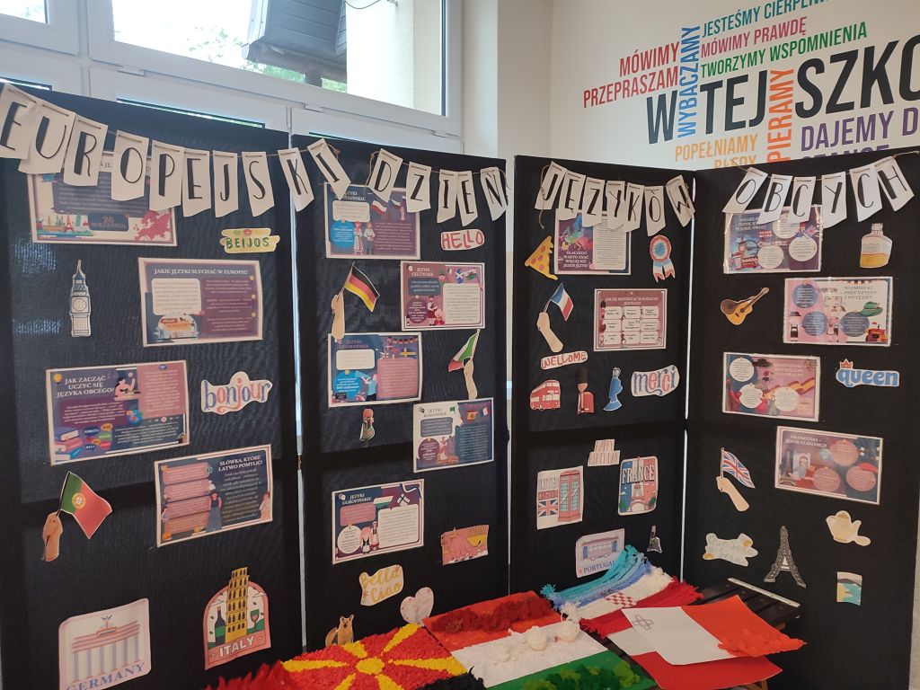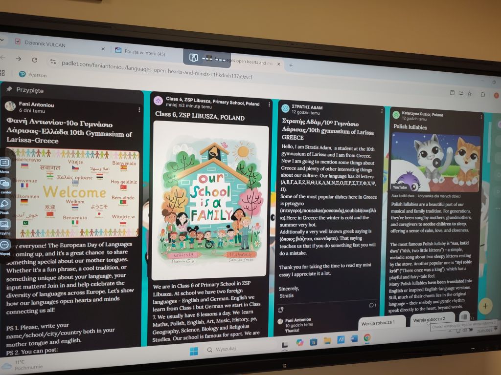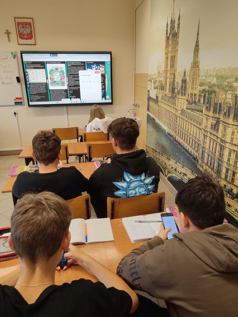 W ramach obchodów odbyły się także lekcje języka angielskiego poświęcone współpracy międzynarodowej. Uczniowie pracowali z wykorzystaniem platformy Padlet, dzieląc się informacjami o swoim kraju, języku, szkole i kulturze z rówieśnikami z różnych krajów europejskich. To ciekawe doświadczenie pozwoliło im nie tylko doskonalić umiejętności językowe, ale także nawiązywać nowe znajomości i zrozumieć, jak ważna jest komunikacja międzykulturowa.