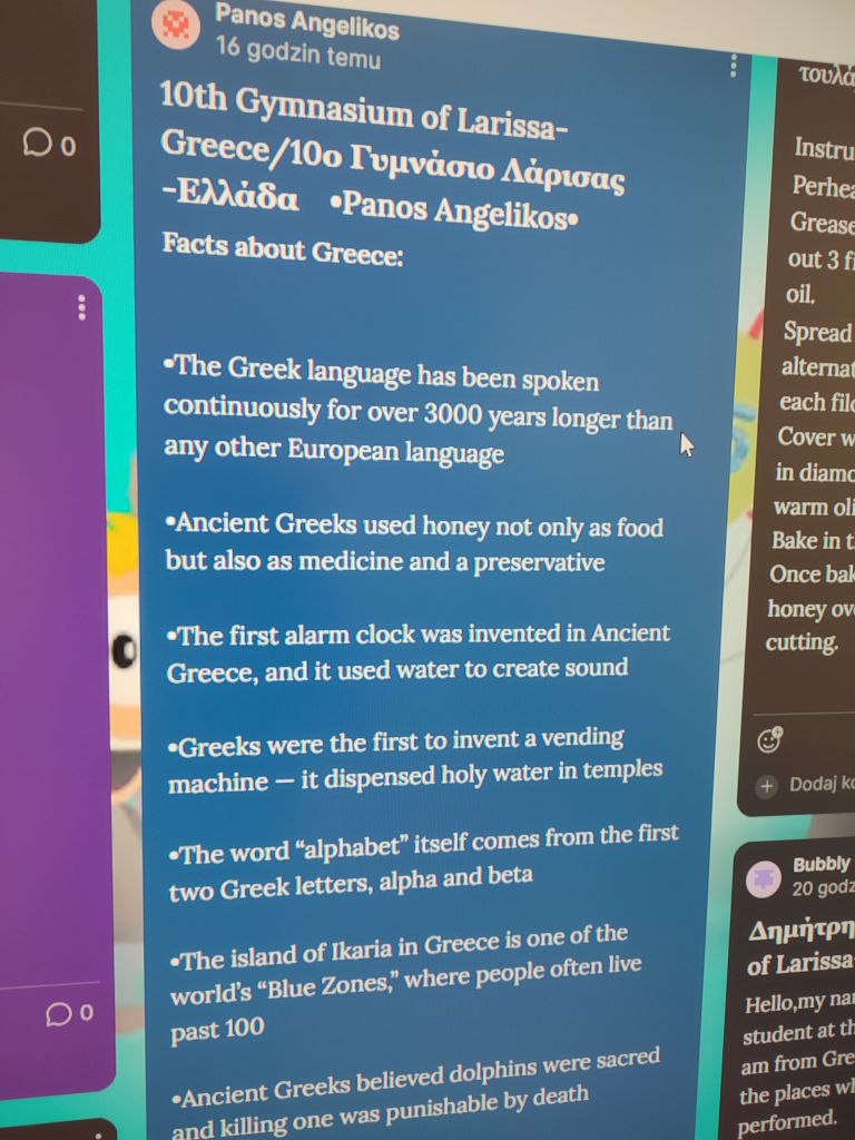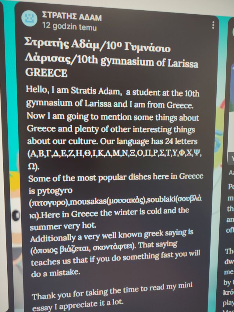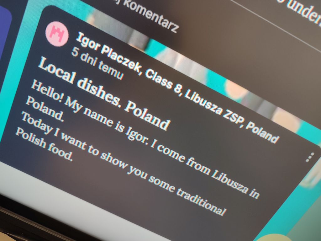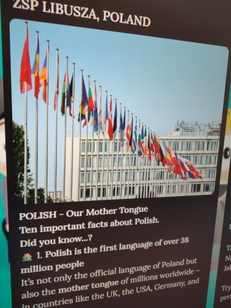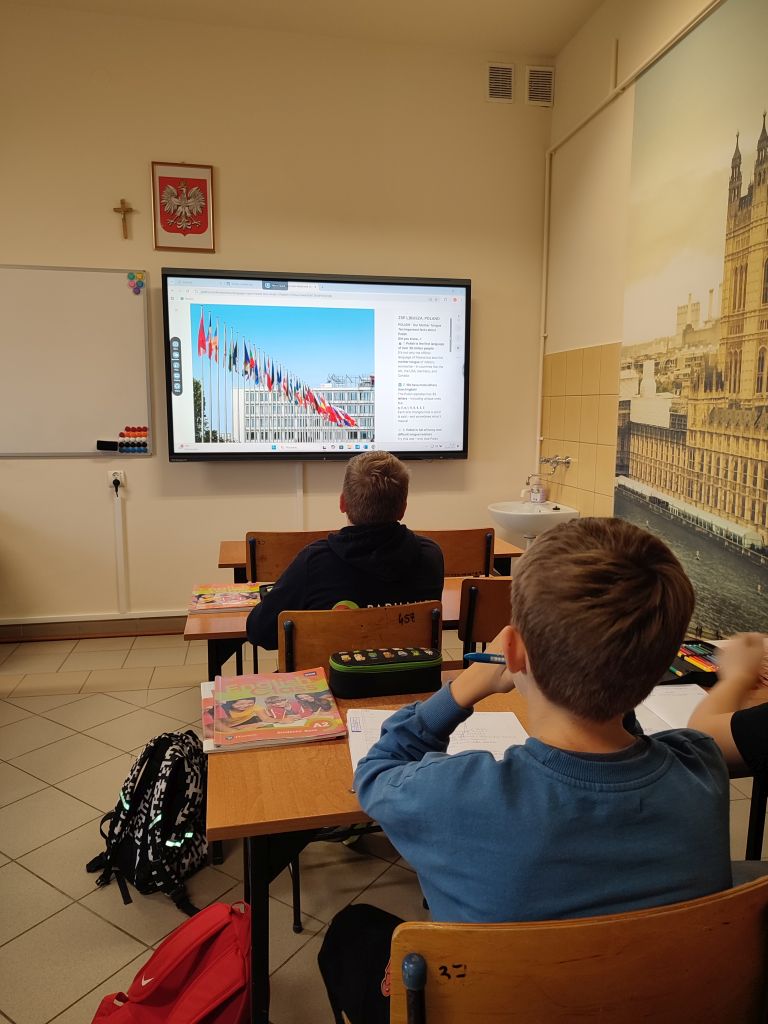 W ramach obchodów odbyły się także lekcje języka angielskiego poświęcone współpracy międzynarodowej. Uczniowie pracowali z wykorzystaniem platformy Padlet, dzieląc się informacjami o swoim kraju, języku, szkole i kulturze z rówieśnikami z różnych krajów europejskich. To ciekawe doświadczenie pozwoliło im nie tylko doskonalić umiejętności językowe, ale także nawiązywać nowe znajomości i zrozumieć, jak ważna jest komunikacja międzykulturowa.