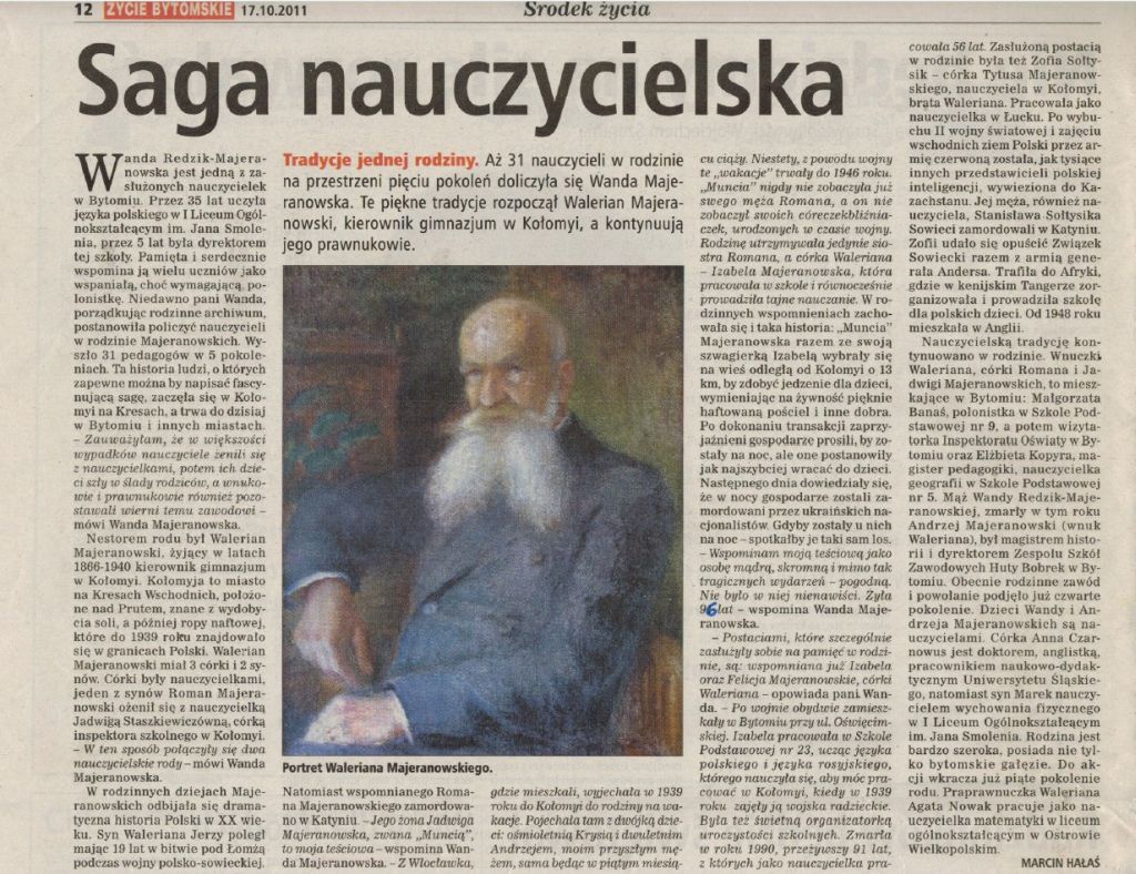 - artykuł „Saga Nauczycielska” pochodzi z gazety „Życie Bytomskie” 17.10.2011