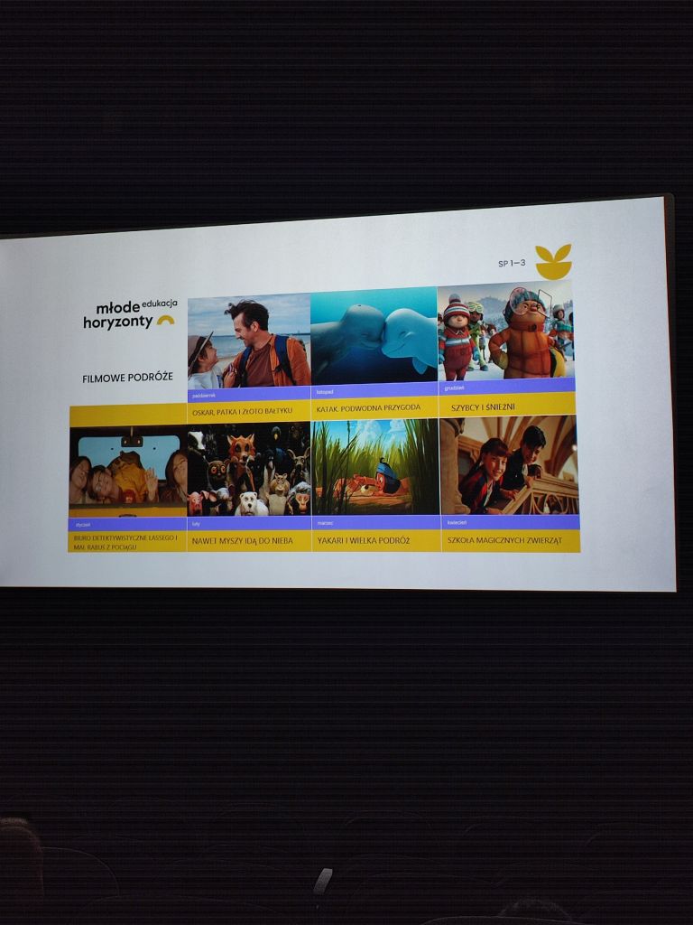 Klasy 2a i 2b rozpoczęły 9 października 2025r. udział w projekcie edukacyjnym Młode Horyzonty. W tym dniu w kinie „ Legenda” w Gorlickim Centrum Kultury uczniowie obejrzeli pierwszy film „Oskar, Patka i złoto Bałtyku” w ramach cyklu ”Filmowe podróże”. Filmy tworzące cykl pokazują życie dzieci zamieszkujących różne szerokości geograficzne i uświadamiają uczniom, że mimo odmiennych tradycji i zwyczajów łączą ich te same marzenia oraz potrzeby zabawy, przyjaźni, miłości i bezpieczeństwa.