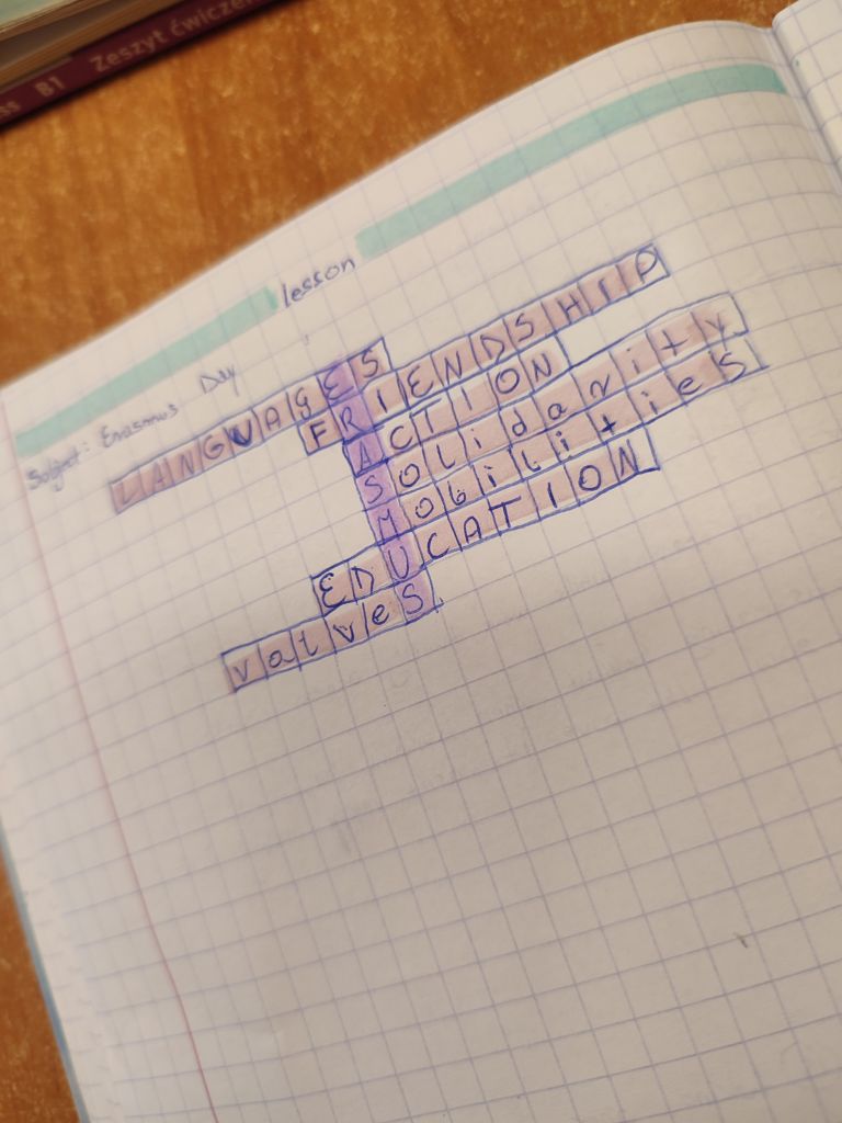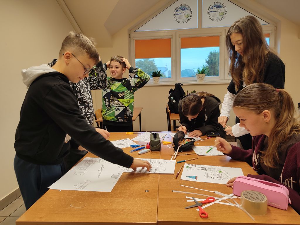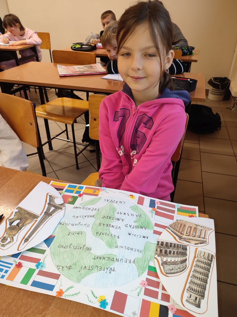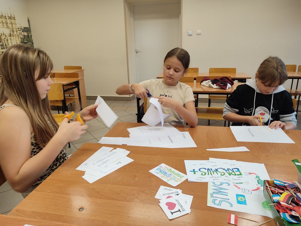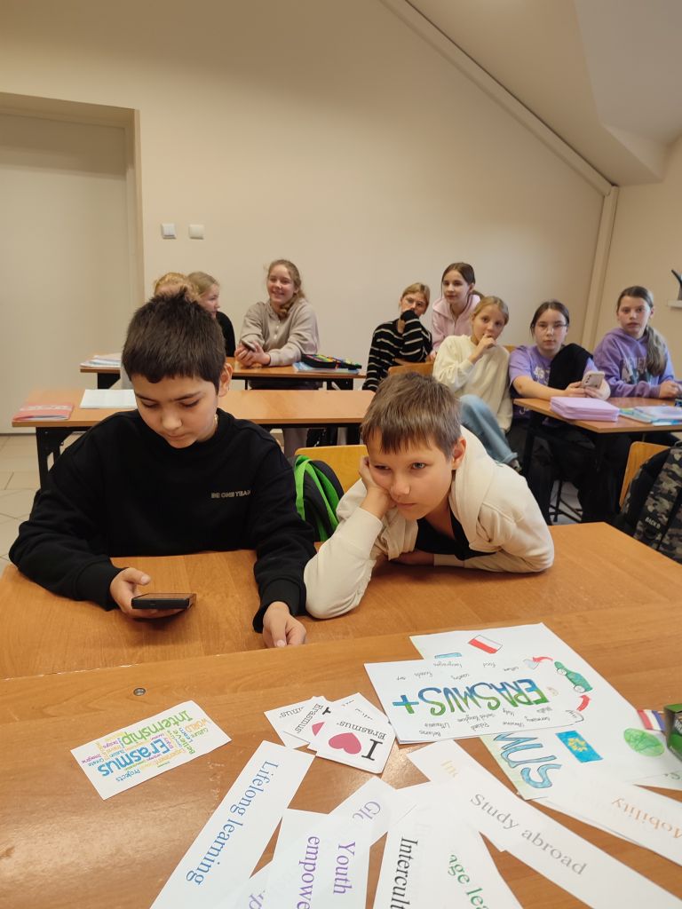 Podczas tygodnia Erasmus Days p. Katarzyna Guzior poprowadziła liczne lekcje tematyczne i warsztaty, w trakcie których uczniowie nie tylko rozwiązywali quizy i krzyżówki, tworzyli plakaty i prace plastyczne, ale także przygotowywali mini-prezentacje o krajach europejskich, opowiadali o ich kulturze, tradycjach i ciekawostkach. Młodzież brała udział w symulowanych europejskich debatach i dyskusjach, podczas których rozwijali umiejętności komunikacyjne, argumentacyjne i współpracy w grupie. Były też zajęcia typu “Erasmus w praktyce” – uczniowie projektowali własne krótkie projekty wymiany szkolnej, ucząc się planowania działań, współpracy i podejmowania decyzji. Zainteresowani programem uczniowie przygotowywali prace plastyczne i plakaty promujące różne kraje Europy – z mapami, flagami, zabytkami i ciekawostkami.