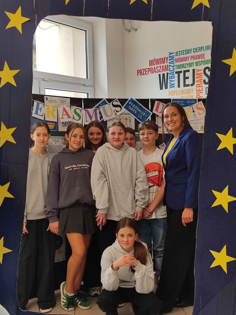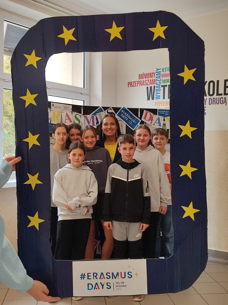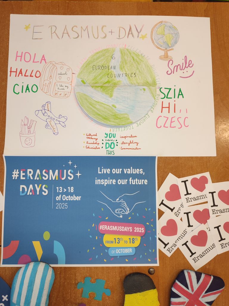 Dodatkowo w ramach ambitnego świętowania Erasmus Days uczniowie przygotowali audycję o Erasmus Days, która została zaprezentowana całej społeczności szkolnej. Sala nr 37 zamieniła się też w prawdziwe europejskie centrum kultury, gdzie można było zrobić pamiątkowe zdjęcie w kąciku fotograficznym z gadżetami Erasmus+, wziąć udział w mini-quizach o krajach UE oraz zmierzyć się z różnymi  zadaniami o tematyce Erasmus+. Szkolny Klub Europejski zakończył tydzień #Erasmus Days 2025 słodką niespodzianką – ciastem z kolorową flagą jednego z krajów europejskich, co dodatkowo zachęcało uczniów do poszerzania wiedzy o wybranym państwie i jego kulturze.
