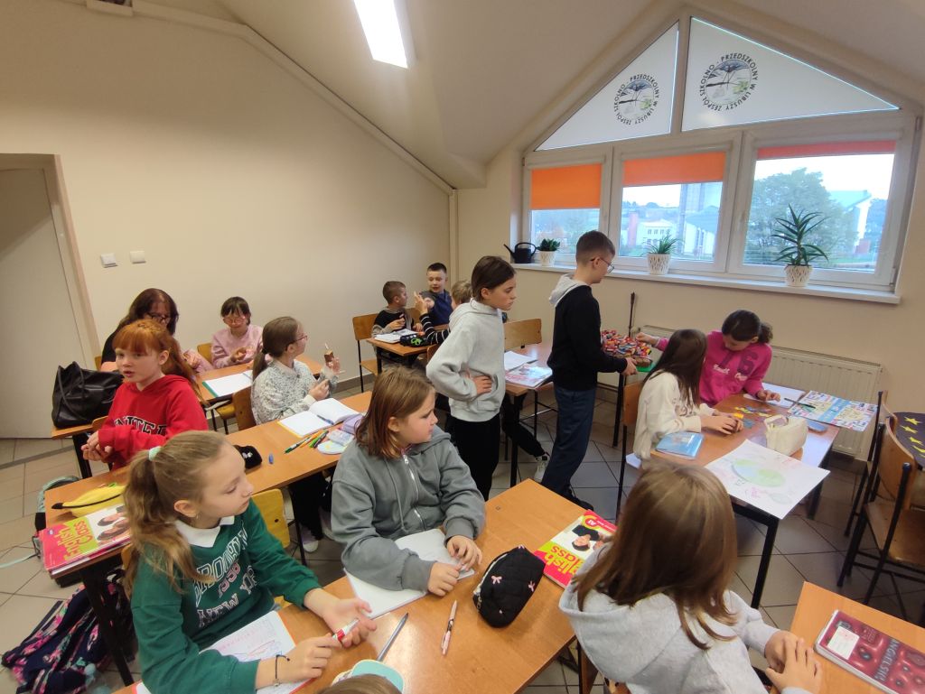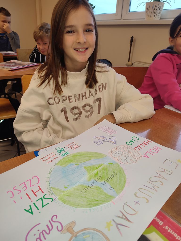 Przez cały tydzień uczniowie klas 4–8 wraz z p. Katarzyną Guzior, koordynatorem Erasmus+, angażowali się w różnorodne, kreatywne aktywności. Powstała gazetka tematyczna, w której zebrano najważniejsze informacje o programie Erasmus+, ze szczególnym uwzględnieniem wymiany młodzieżowej i kadry nauczycielskiej, dobrych praktyk oraz inspirujących metod dydaktycznych. Sala nr 37 tętniła życiem bardziej niż zwykle – dekoracje przygotowane przez uczniów przyciągały uwagę wszystkich odwiedzających, pozwalając młodzieży odkrywać międzynarodowy wymiar działań naszej szkoły i uczyć się poprzez zabawę i praktyczne doświadczenia.