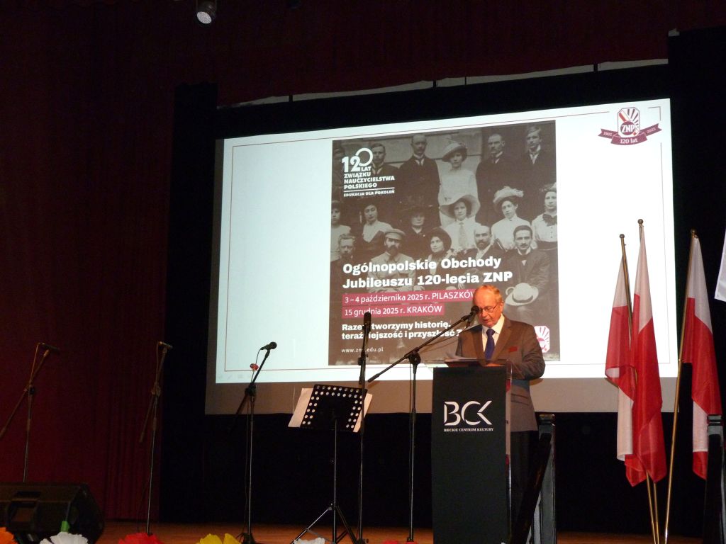 14 października 2025 roku w sali kina Farys w Bieczu odbyła się uroczysta akademia z okazji Dnia Edukacji Narodowej oraz jubileuszu 120-lecia Związku Nauczycielstwa Polskiego. W wydarzeniu wzięli udział zaproszeni goście – przedstawiciele władz samorządowych, reprezentanci ZNP, dyrektorzy szkół oraz nauczyciele i pracownicy oświaty. Uczniowie naszej szkoły zaprezentowali humorystyczny montaż słowno-muzyczny, ukazujący różne typy nauczycieli. Wszystkie postacie przedstawiono w ciepły i życzliwy sposób, podkreślając pozytywne relacje między nauczycielami a uczniami. Na zakończenie młodzi artyści złożyli wszystkim pedagogom serdeczne życzenia z okazji ich święta. Podczas spotkania wręczono Nagrody Burmistrza dla zasłużonych nauczycieli oraz nagrody jubileuszowe Związku Nauczycielstwa Polskiego, doceniając wkład pedagogów w rozwój edukacji. Kolejnego dnia uczniowie naszej szkoły zaprezentowali ten sam program artystyczny w murach Zespołu Szkolno-Przedszkolnego w Libuszy. Pięknie recytowane wiersze i piosenki w wykonaniu uczniów przypomniały, jak ważna i wymagająca jest praca nauczyciela, a jednocześnie jak wiele radości może dawać codzienny kontakt z młodzieżą. Na zakończenie uroczystości pani dyrektor Agnieszka Kapusta skierowała słowa podziękowania do nauczycieli i pracowników, wyrażając wdzięczność za ich codzienny trud, zaangażowanie oraz współpracę na rzecz szkoły. Podziękowała również uczniom za udany występ artystyczny, aktywny udział w przygotowaniu akademii oraz okazywany szacunek i życzliwość wobec wszystkich pracowników szkoły.