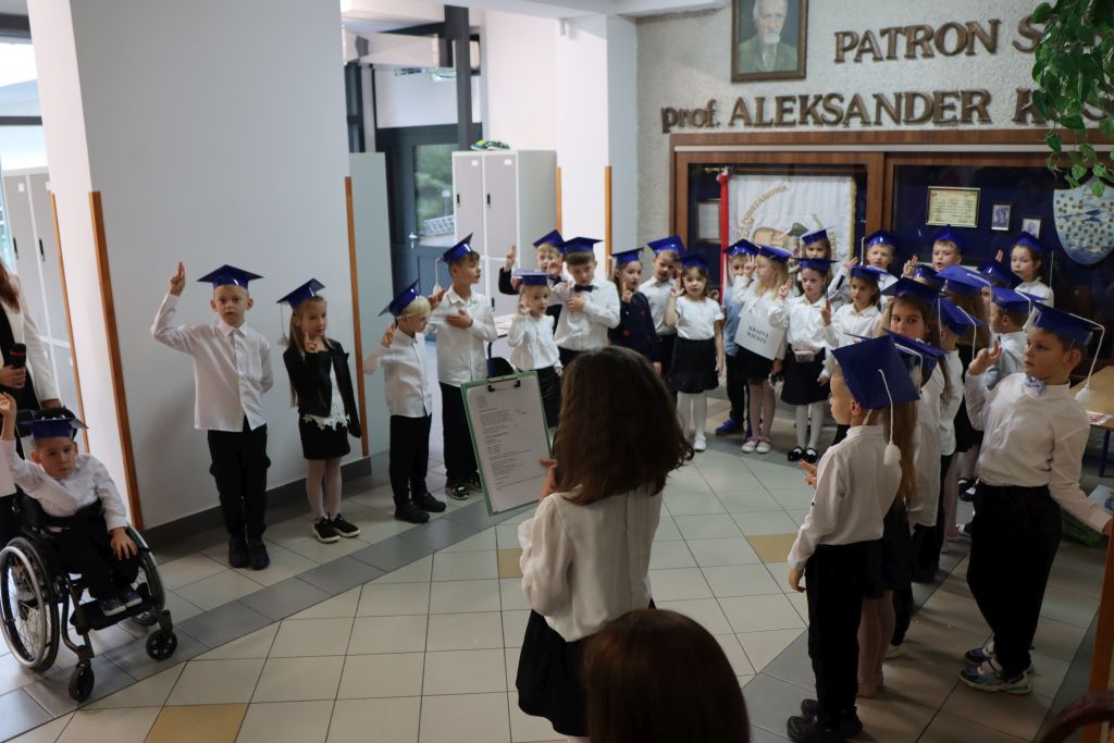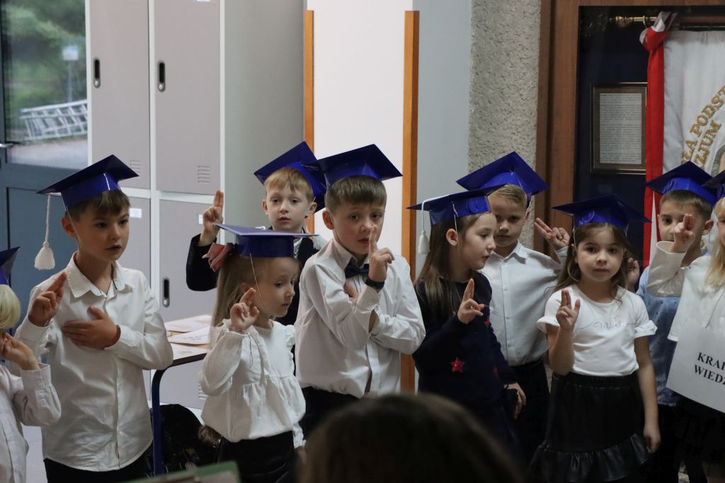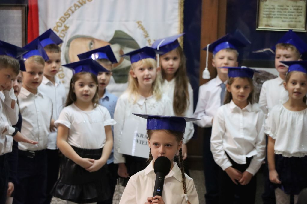 10 października 2025 r., 32 dzieci, które rozpoczęły naukę w klasie pierwszej zostało przyjętych do grona uczniów Szkoły Podstawowej w Zespole Szkolno- Przedszkolnym w Libuszy. Podczas uroczystości „Pasowania na ucznia” pierwszoklasiści zaprezentowali swoje umiejętności recytatorskie i wokalne. Zaprosili zebranych gości do czterech krain: grzeczności, pracy, wiedzy oraz miłości. Wykazały się wiedzą na temat bezpiecznego i kulturalnego zachowania w szkole, klasie i poza nią, obowiązków szkolnych, czytania, liczenia, a także wiedzą o Ojczyźnie. Swoją postawą udowodniły, że gotowe są do złożenia uroczystego Ślubowania oraz pasowania na ucznia, którego dokonała Dyrektor Szkoły mgr Agnieszka Kapusta. Dzieci otrzymały pamiątkowe dyplomy, a przedstawiciele Małego Samorządu Uczniowskiego wręczyły im słodkie upominki. Rodzice przygotowali swoim dzieciom słodki poczęstunek i prezenty w postaci Ołówków Obfitości. Wszystkim Pierwszoklasistom pragniemy życzyć samych sukcesów, radości oraz wytrwałości w pokonywaniu wyzwań.