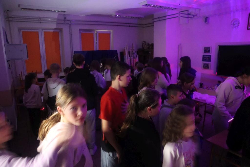 W poniedziałek, 24 listopada 2025 roku, w naszej szkole odbyła się długo wyczekiwana Dyskoteka Andrzejkowa, w której udział wzięli uczniowie klas starszych. Wspólna zabawa przy muzyce, kolorowe światła i andrzejkowy klimat stworzyły wyjątkową atmosferę tego popołudnia.