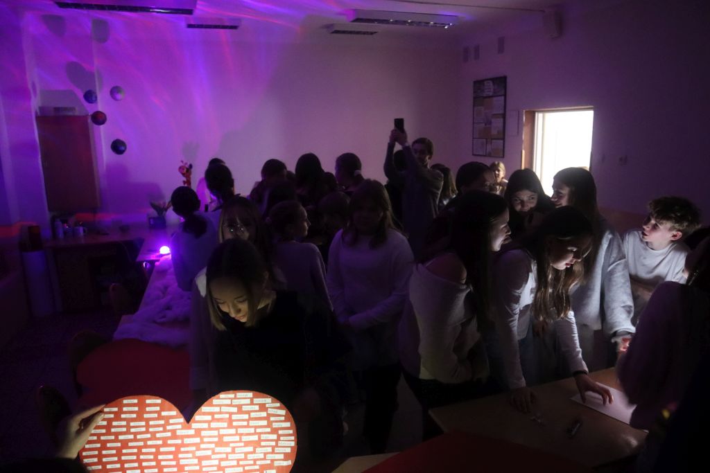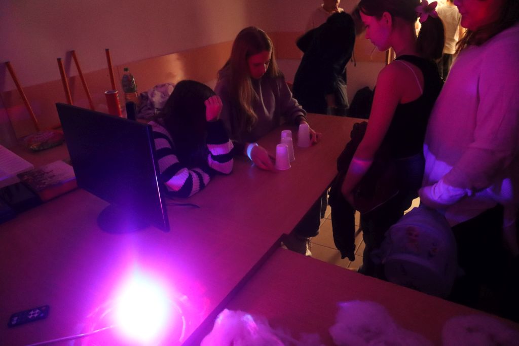 Podczas dyskoteki nie mogło zabraknąć tradycyjnych andrzejkowych wróżb, które cieszyły się ogromnym zainteresowaniem uczestników. Uczniowie z uśmiechem na twarzy sprawdzali, co przyniesie im przyszłość, losując kubeczki z przepowiedniami, przebijając serce z imionami i biorąc udział w zabawach pełnych humoru i magii.