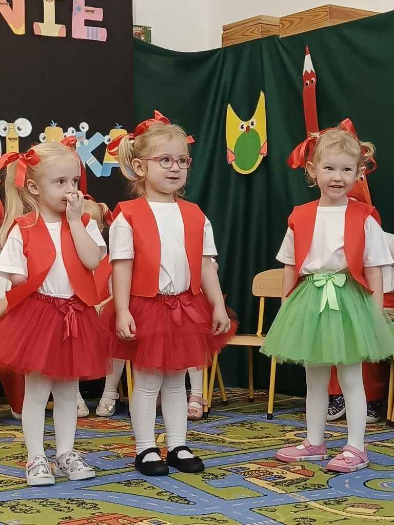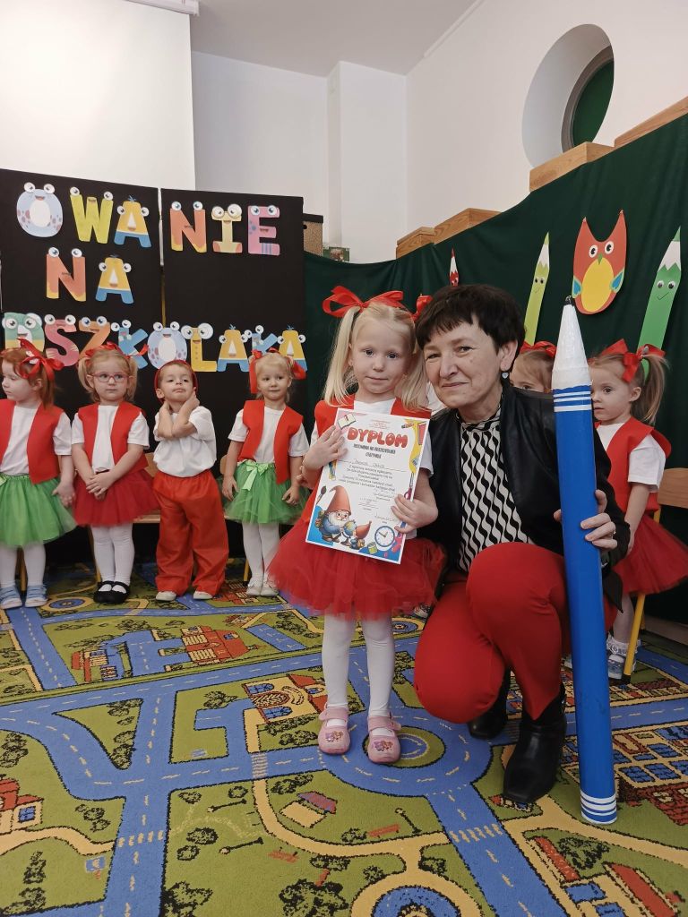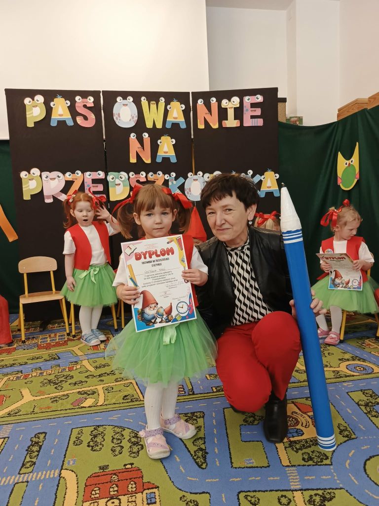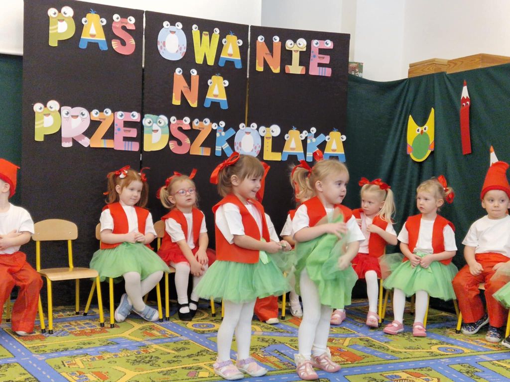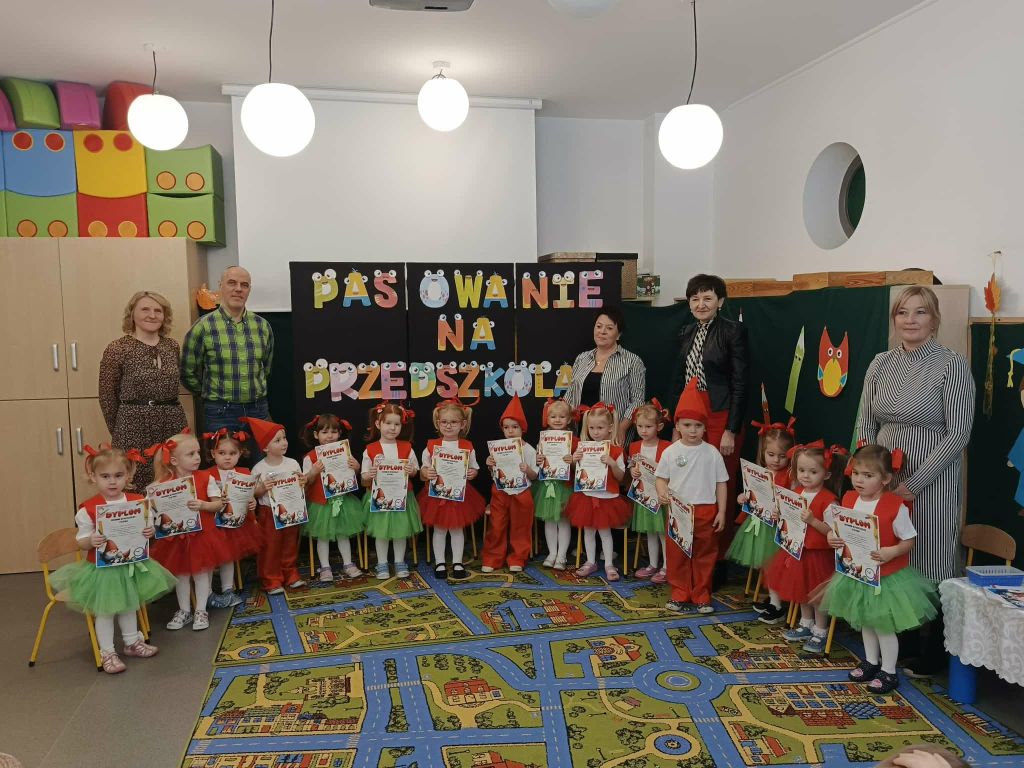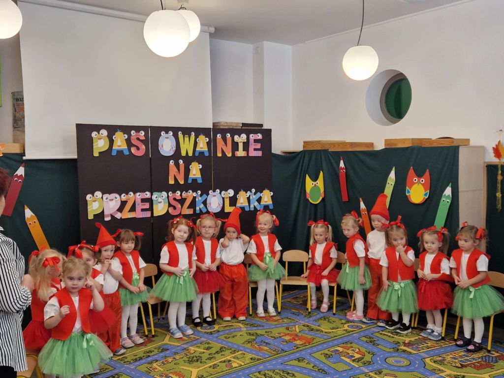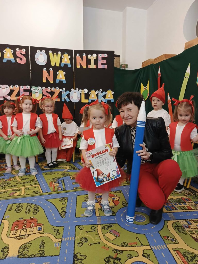 W dniu 26 listopada 2025 roku odbyła się wielka uroczystość „Pasowania na Przedszkolaka” w grupie Krasnali. Od samego rana trwały przygotowania. Uroczystość rozpoczęła się od przywitania zaproszonych gości oraz przedstawienia krótkiej części artystycznej. Mali artyści zaprezentowali przygotowane wierszyki, tańce oraz piosenki. Dla wszystkich był to pierwszy, bardzo ważny występ. Swoim radosnym występem udowodniły, że zasługują na przyjęcie w poczet społeczności przedszkola. Po części artystycznej z wielką dumą dzieci powtórzyły słowa przyrzeczenia, a następnie pani Dyrektor Agnieszka Kapusta dokonała aktu pasowania.