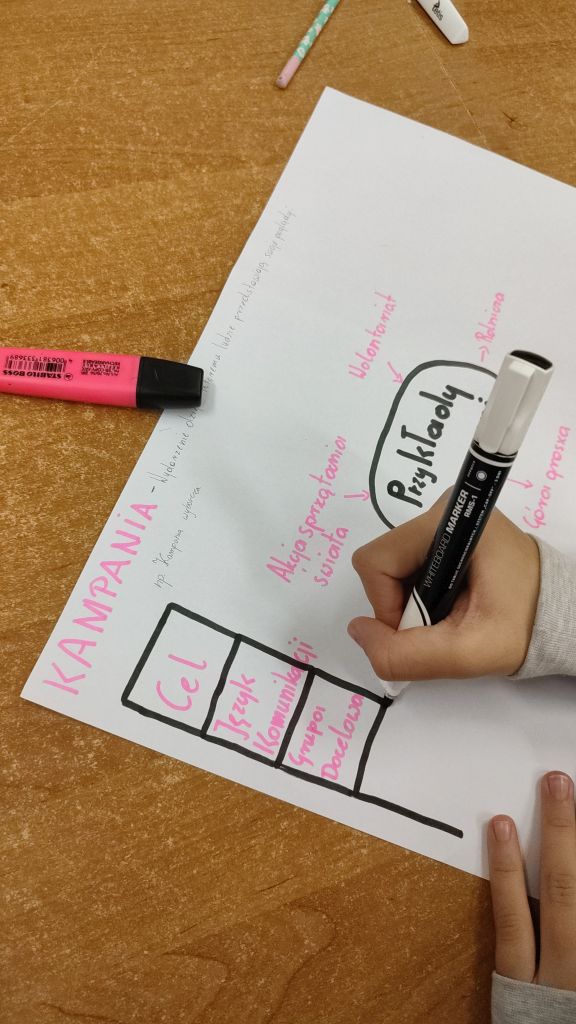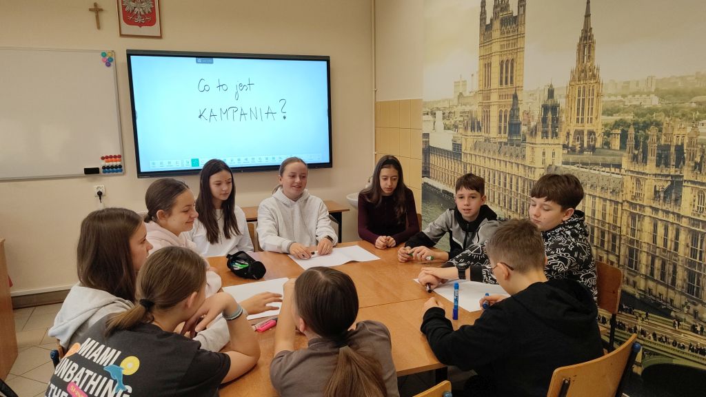 W ramach działań uczniowie przechodzą przez pełen proces tworzenia kampanii społecznej: od odnalezienia ważnego problemu w swoim środowisku, przez planowanie i przygotowanie przekazu, po realizację działań i prezentację efektów całej społeczności szkolnej. Koordynator projektu, pani Katarzyna Guzior, wspiera uczniów w rozwijaniu kluczowych kompetencji przyszłości – kreatywności, otwartości, myślenia krytycznego, innowacyjności, empatii i współpracy. Uczniowie pracują z ogromnym zaangażowaniem – są twórczy, aktywni i chętni do podejmowania nowych wyzwań.