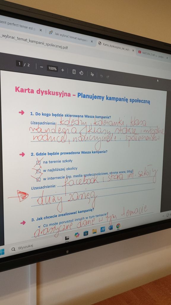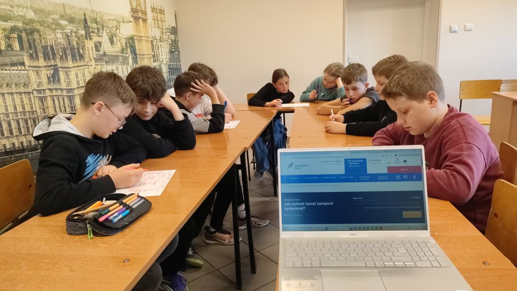 Uczniowie, którzy ukończą projekt i wykażą się kreatywnością oraz innowacyjnym podejściem, otrzymają analogowy zestaw zadań wspierających rozwój kompetencji społecznych i obywatelskich, a także wezmą udział w wykładzie online pt. „Dlaczego jedni pomagają, a inni odwracają wzrok?”, prowadzonym przez znaną psycholożkę Marię Libiszewską. Projekt „Młodzi w działaniu” rozwija postawy prospołeczne, wzmacnia zaangażowanie obywatelskie oraz uczy krytycznego myślenia i współpracy. Uczniowie pod kierunkiem pani Katarzyny Guzior z zaangażowaniem realizują kolejne etapy pracy nad kampanią społeczną – od wyboru problemu, przez planowanie harmonogramu działań, aż po finalną prezentację efektów, która już niebawem zostanie zaprezentowana społeczności szkolnej. Jesteśmy dumni z naszych uczniów i z ogromną radością obserwujemy, jak rozwijają swoje umiejętności, ucząc się działać odpowiedzialnie, odważnie i z myślą o innych.