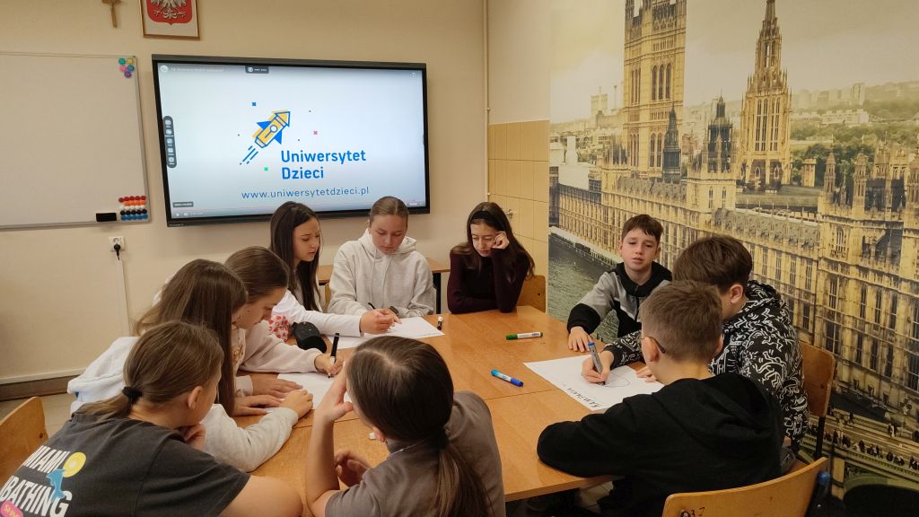Od września uczniowie należący do Klubu Europejskiego biorą udział w ogólnopolskim projekcie „Młodzi w działaniu”, realizowanym we współpracy z Fundacją Uniwersytet Dzieci. Projekt przeznaczony jest dla uczniów klas 6–8 i ma na celu wzmocnienie przekonania młodych ludzi, że ich głos i działania naprawdę mają znaczenie, a oni sami mogą pozytywnie wpływać na swoje najbliższe otoczenie. Jego założenia doskonale wpisują się w kierunki polityki oświatowej państwa, zwłaszcza w obszary związane z edukacją obywatelską, bezpieczeństwem cyfrowym oraz wzmacnianiem dobrostanu dzieci i młodzieży. To również inicjatywa aktualna, potrzebna i niezwykle ważna, dotykająca delikatnych, trudnych i bardzo współczesnych wyzwań wychowawczych. Dodatkowo projekt objęty jest patronatem Ministra Edukacji oraz Ministerstwa Edukacji Narodowej, co podkreśla jego rangę i znaczenie.