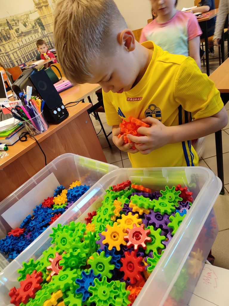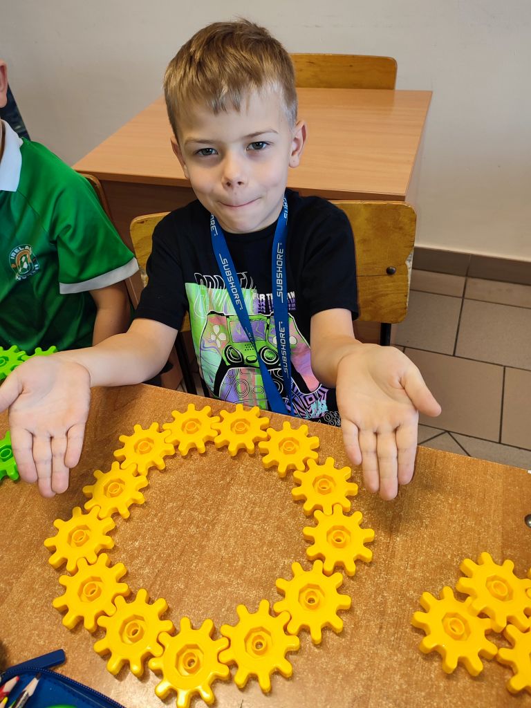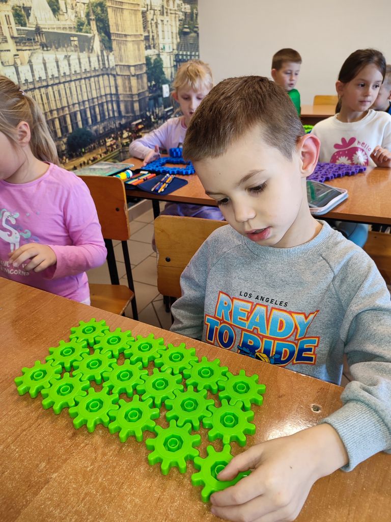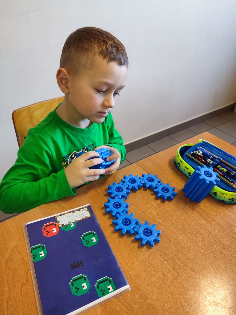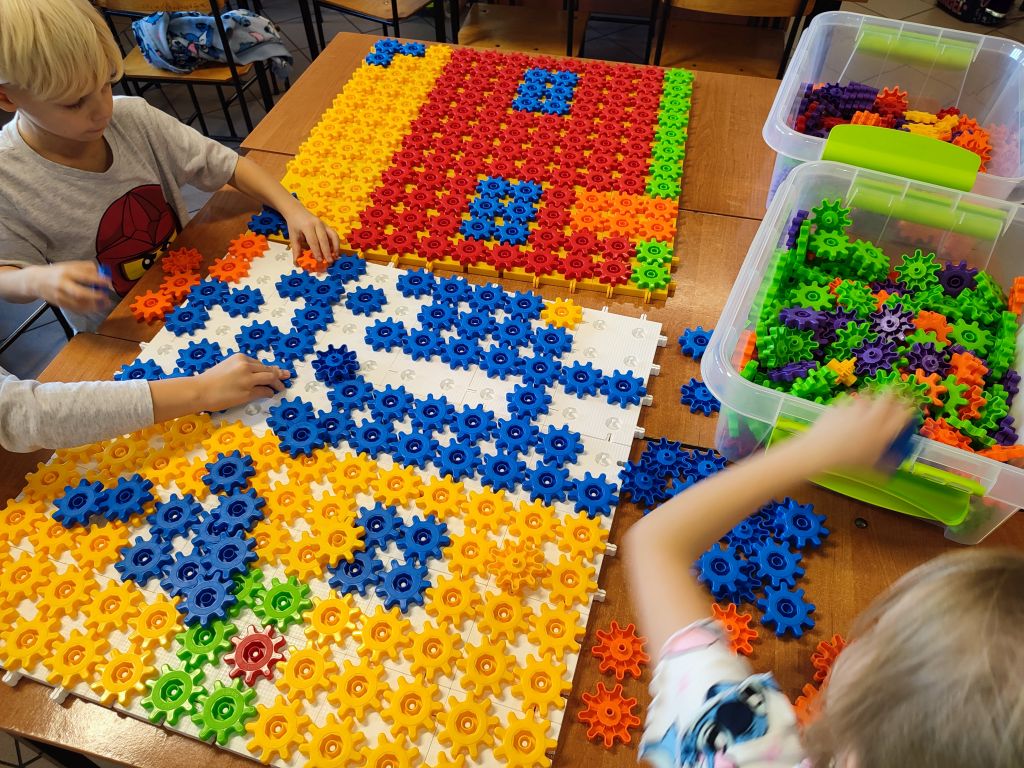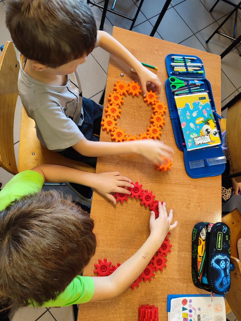 Pierwszoklasiści bawią się doskonale, eksperymentują, sprawdzają, co się poruszy, co działa, a co wymaga poprawy, odkrywając przy tym, że matematyka wcale nie musi być nudna ani trudna, zwłaszcza kiedy towarzyszą jej kolorowe kółka, trybiki i wirujące mechanizmy Korbo.