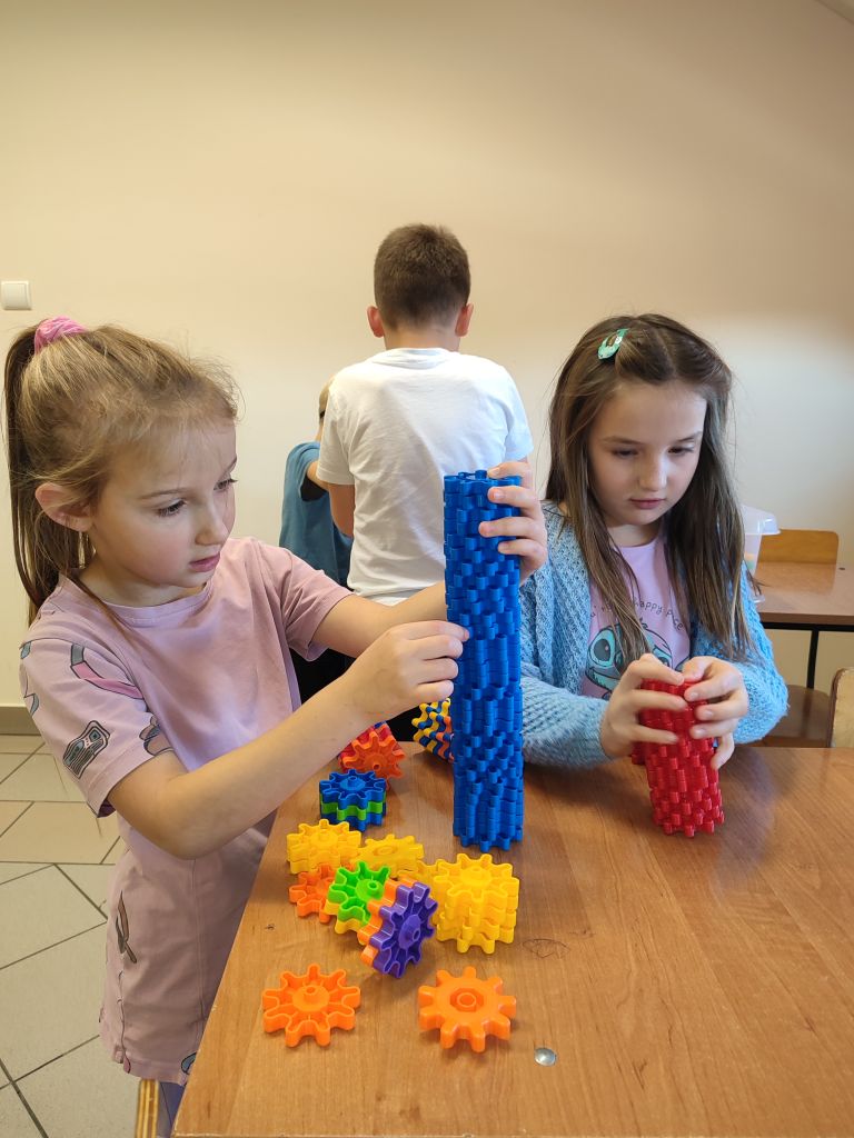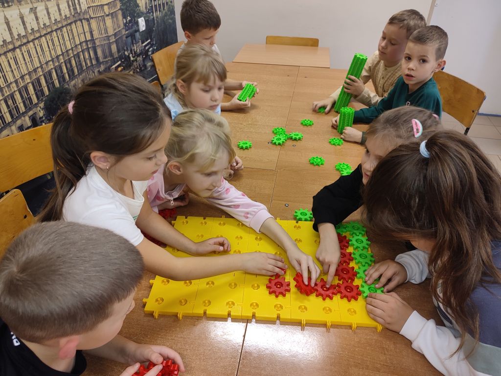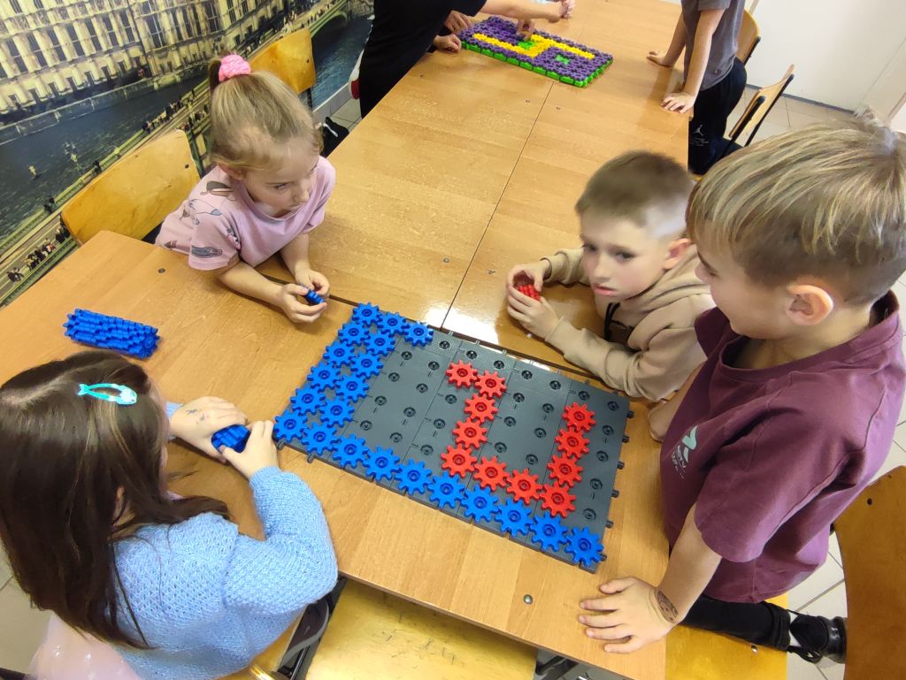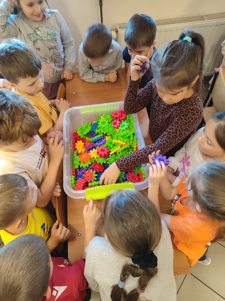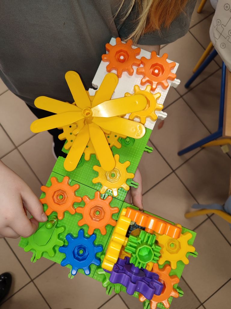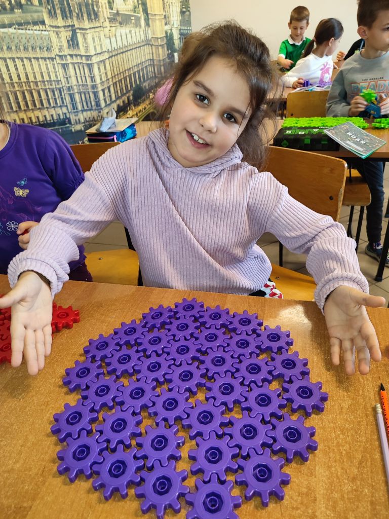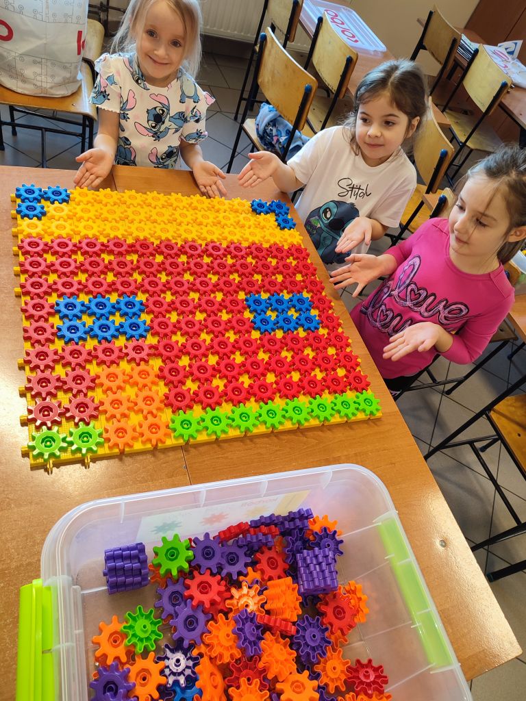 Pierwszoklasiści bawią się doskonale, eksperymentują, sprawdzają, co się poruszy, co działa, a co wymaga poprawy, odkrywając przy tym, że matematyka wcale nie musi być nudna ani trudna, zwłaszcza kiedy towarzyszą jej kolorowe kółka, trybiki i wirujące mechanizmy Korbo.