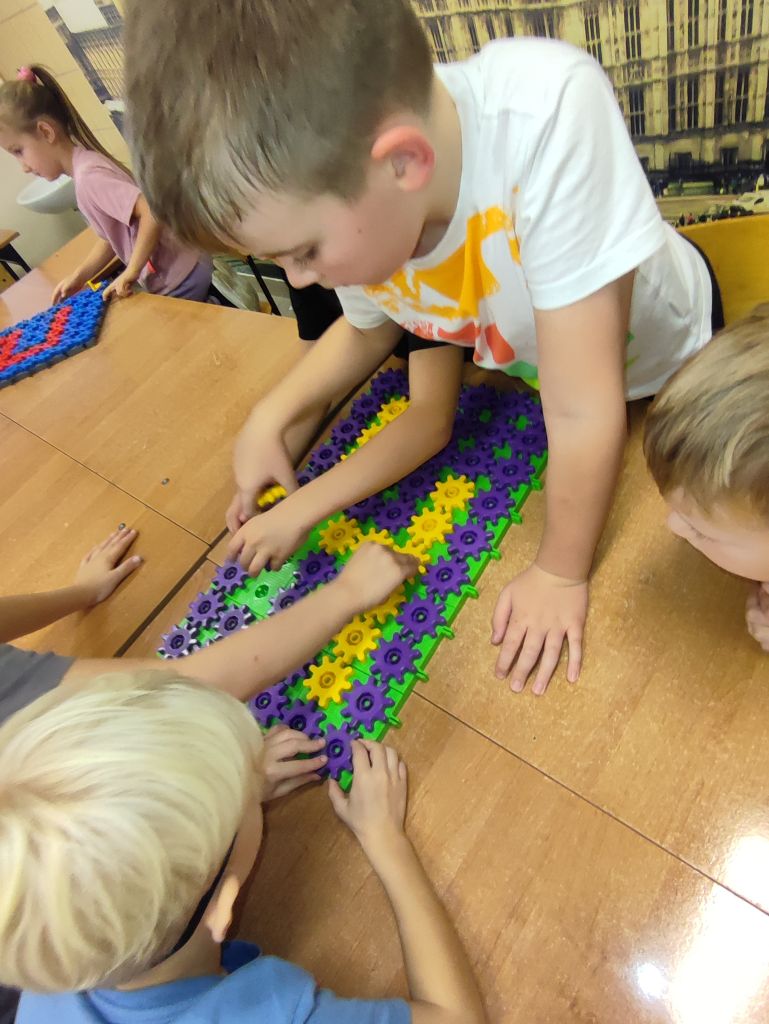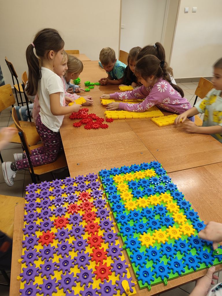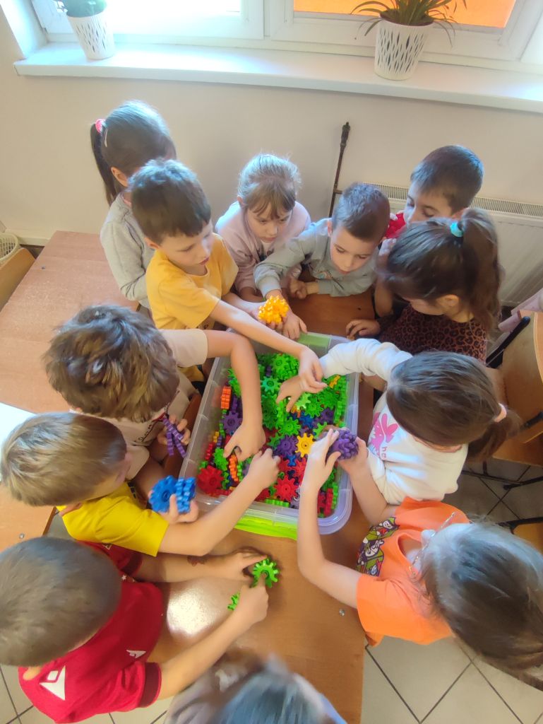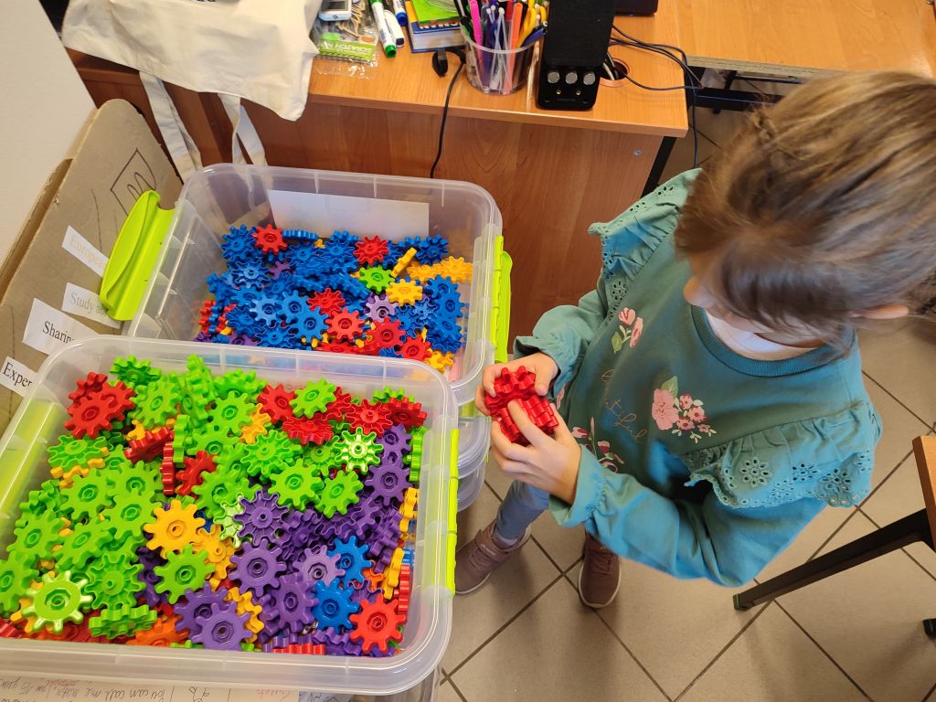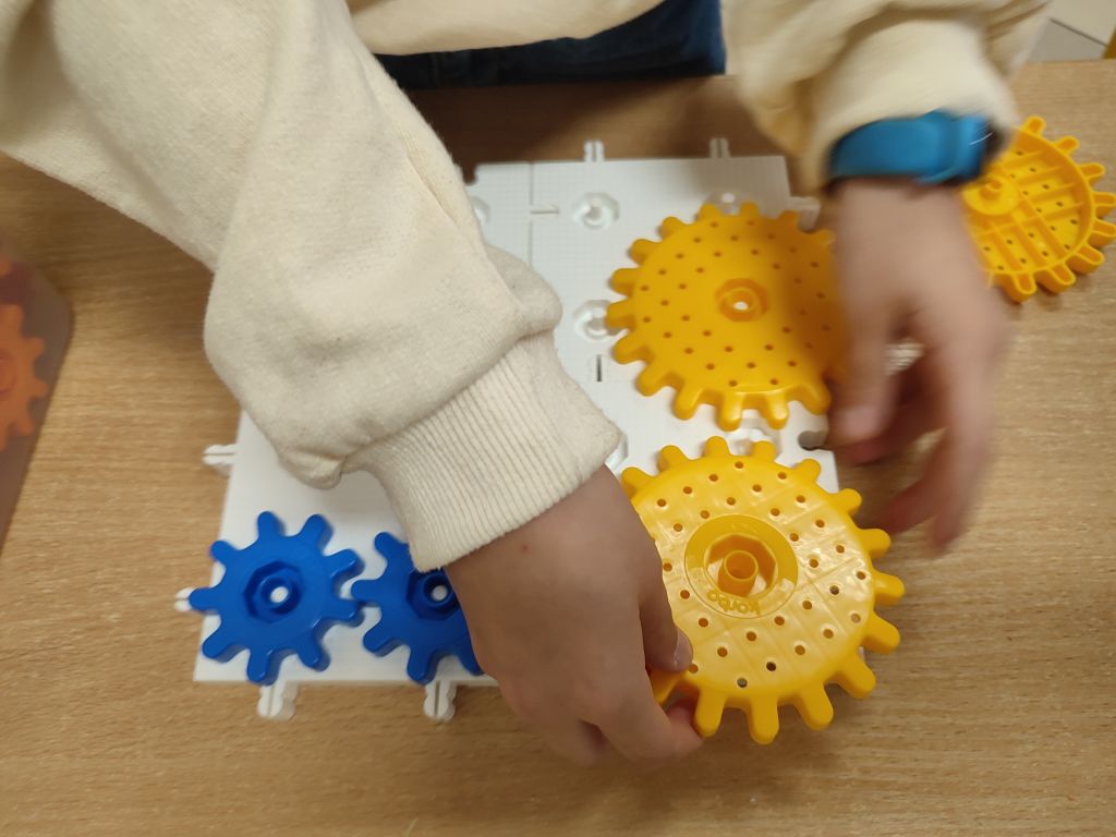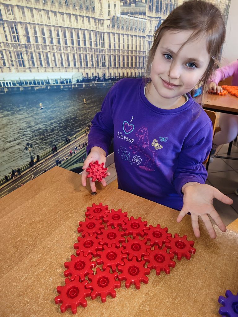 Pierwszoklasiści bawią się doskonale, eksperymentują, sprawdzają, co się poruszy, co działa, a co wymaga poprawy, odkrywając przy tym, że matematyka wcale nie musi być nudna ani trudna, zwłaszcza kiedy towarzyszą jej kolorowe kółka, trybiki i wirujące mechanizmy Korbo.