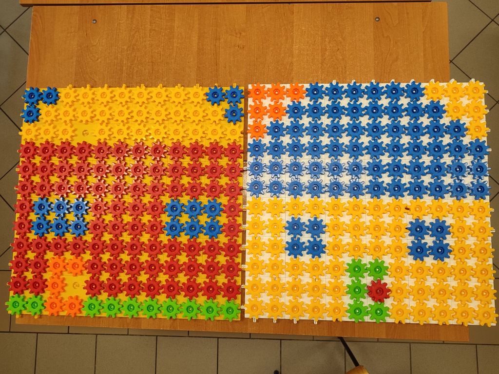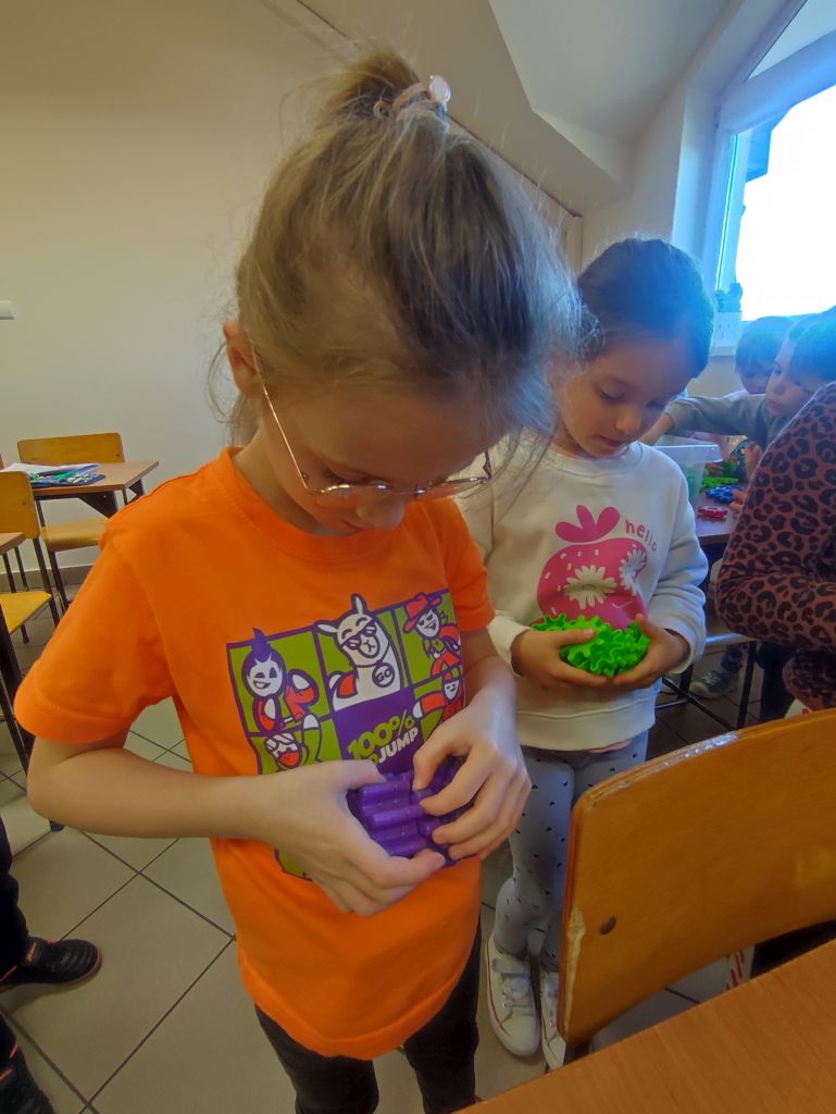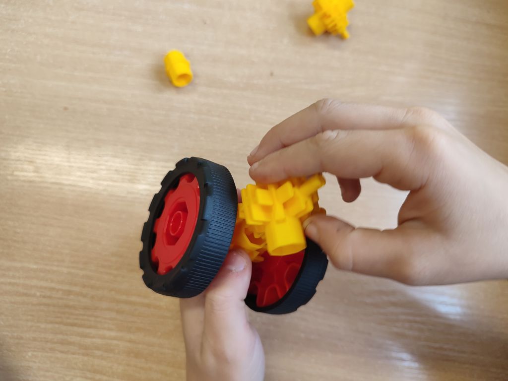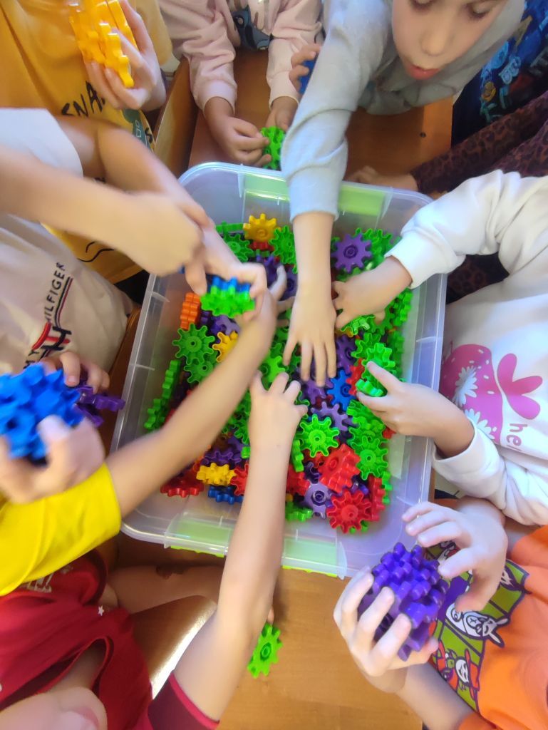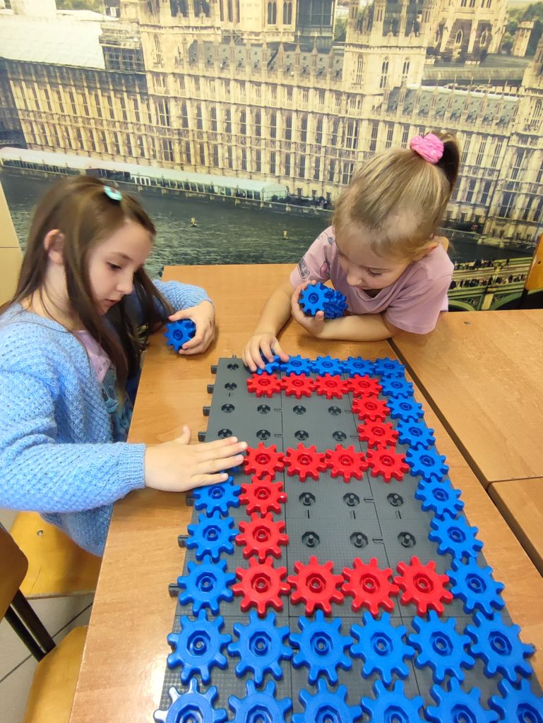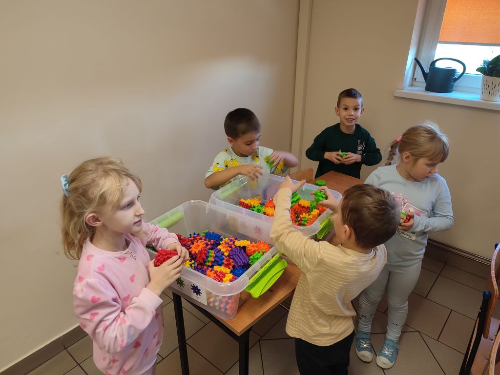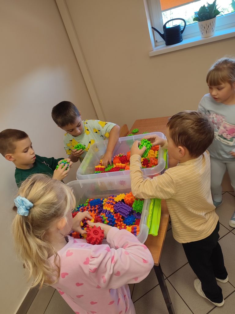 Pierwszoklasiści bawią się doskonale, eksperymentują, sprawdzają, co się poruszy, co działa, a co wymaga poprawy, odkrywając przy tym, że matematyka wcale nie musi być nudna ani trudna, zwłaszcza kiedy towarzyszą jej kolorowe kółka, trybiki i wirujące mechanizmy Korbo.