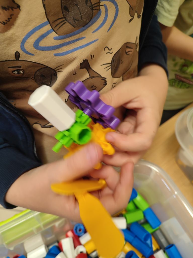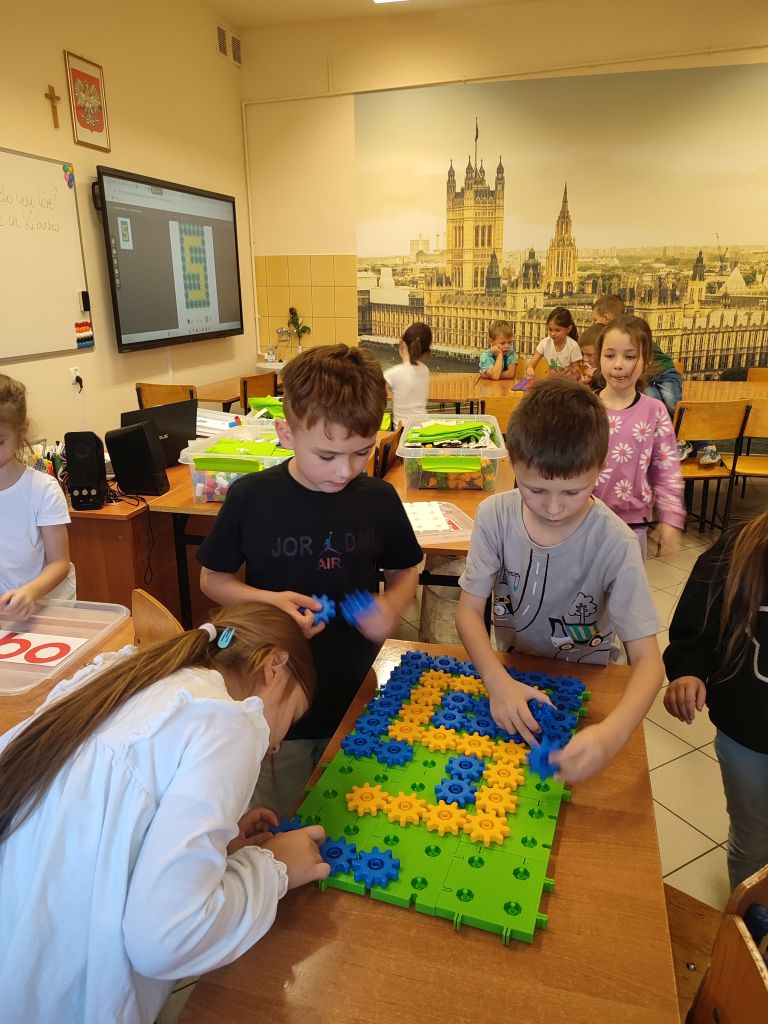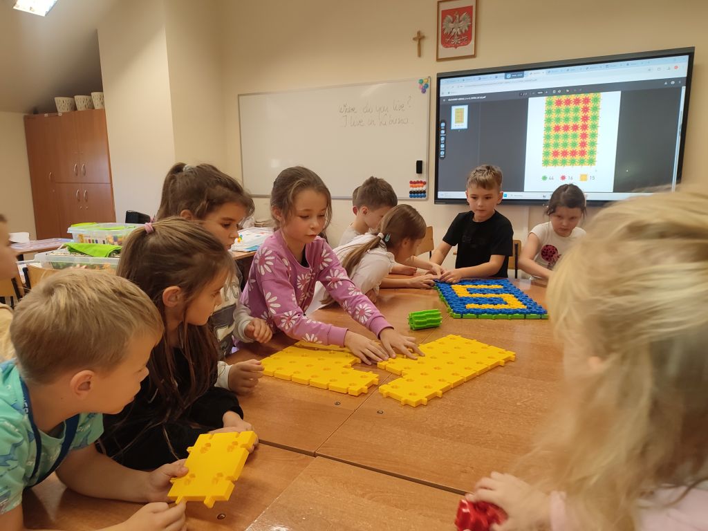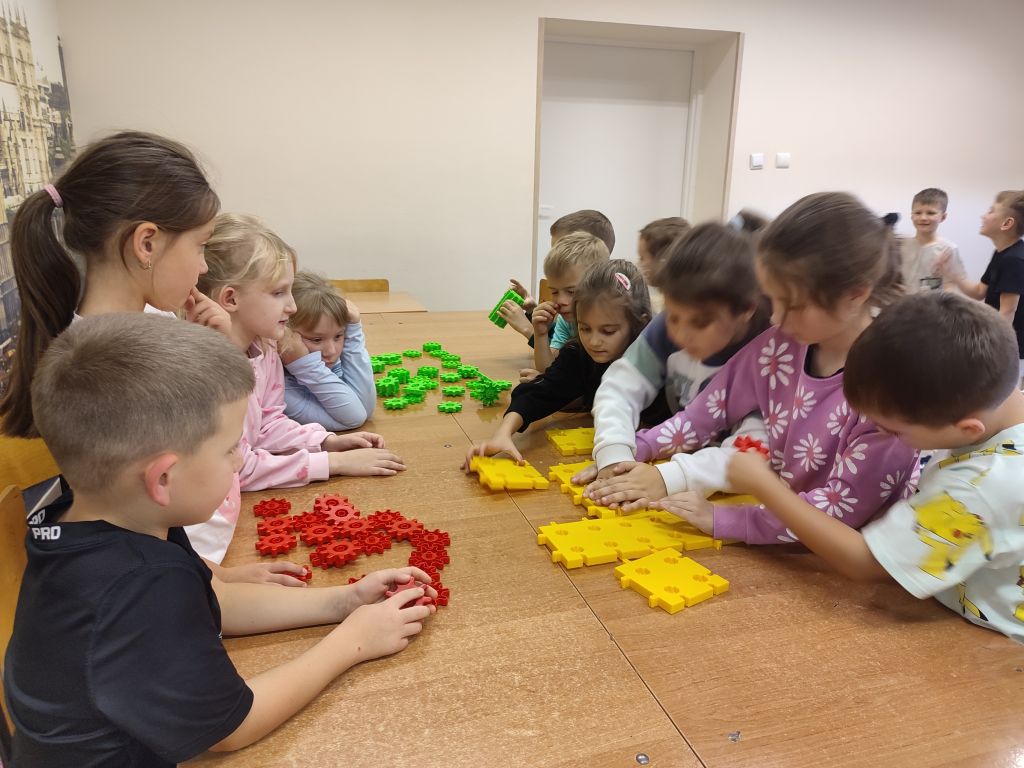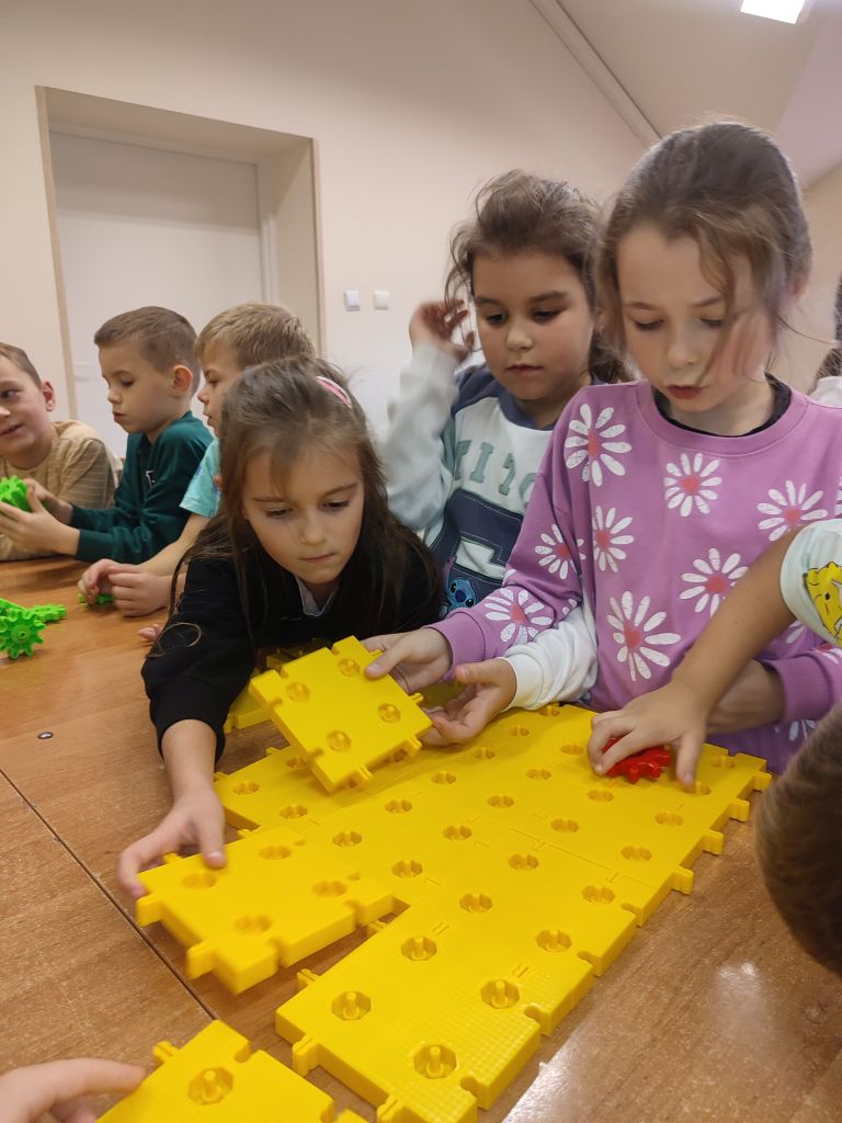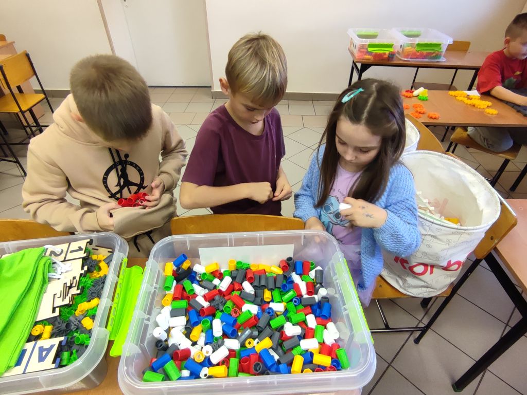 W trakcie zajęć kodują i dekodują proste sekwencje, wykorzystując kolory i układy elementów do tworzenia tras, rytmów i wzorów, zliczają elementy w konstrukcjach, szukają powtarzających się motywów i analizują, co trzeba dodać lub odjąć, aby modele działały prawidłowo, szczególnie w przypadku poruszających się mechanizmów. Wszystkie te aktywności wspierają realizację zapisów podstawy programowej edukacji wczesnoszkolnej, m.in. rozpoznawanie i nazywanie figur geometrycznych, orientację w przestrzeni i na płaszczyźnie, liczenie i porównywanie liczebności zbiorów, dostrzeganie rytmów i kontynuowanie sekwencji oraz rozwijanie logicznego myślenia i sprawczości dziecka, łącząc wiedzę z różnych obszarów w duchu STEAM.