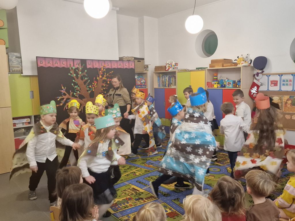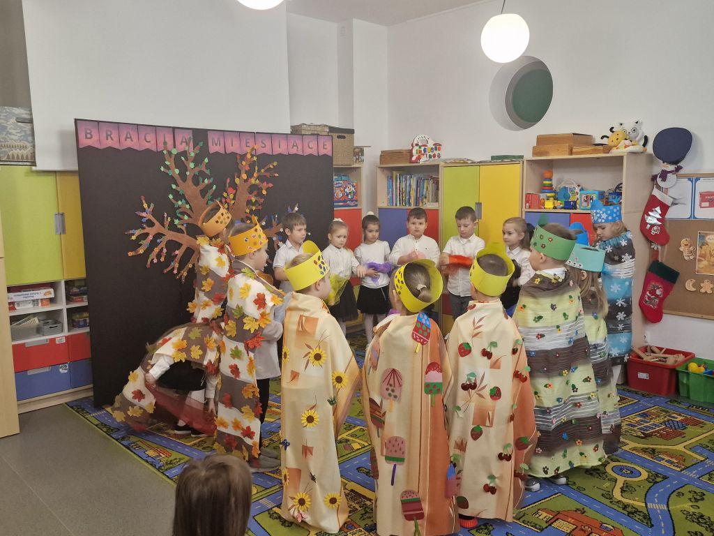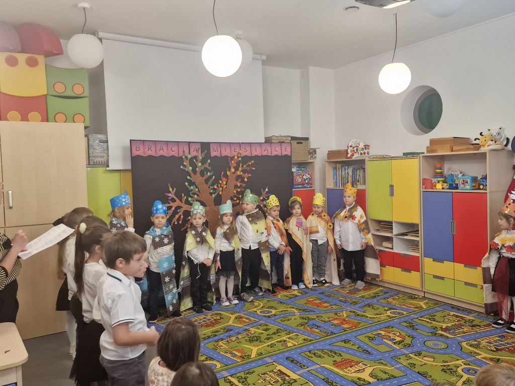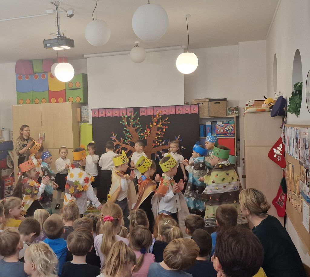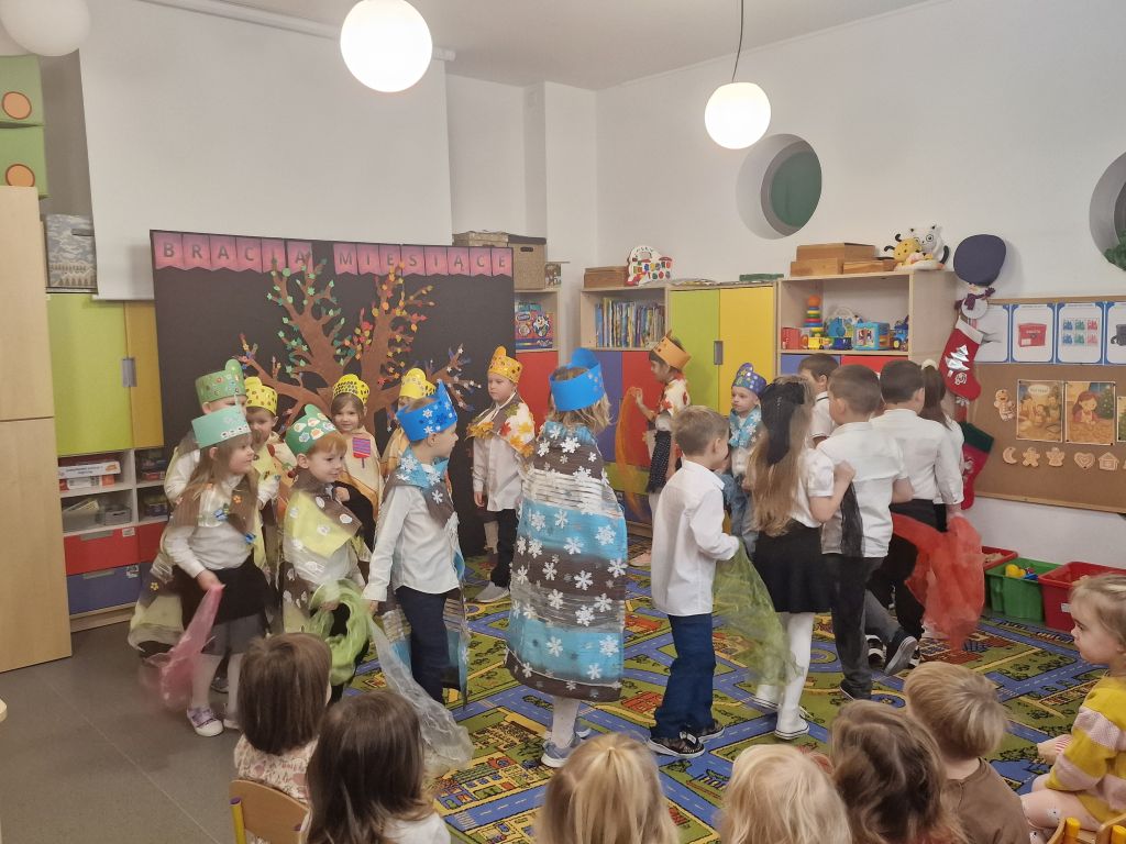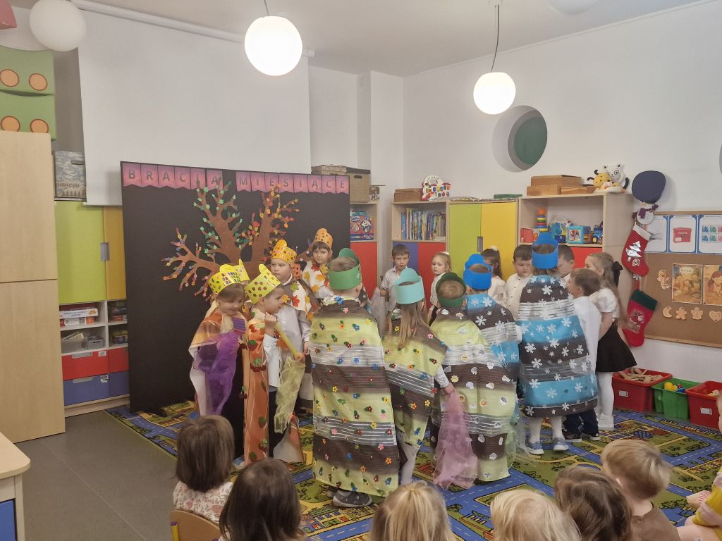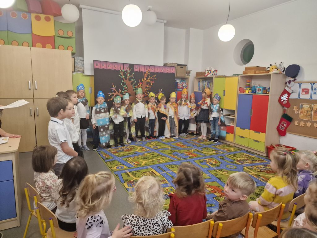 12 grudnia 2025 r. w naszym przedszkolu odbyło się wyjątkowe wydarzenie – świąteczno-noworoczne przedstawienie pt. „Bracia Miesiące”, przygotowane przez dzieci z grupy Leśnych Duszków. W uroczystości wzięły udział wszystkie grupy przedszkolne, a swoją obecnością zaszczycił nas również Pan Dyrektor.