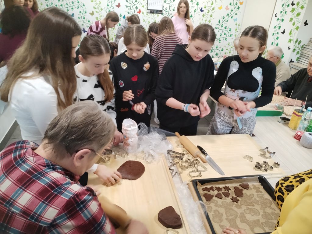 Uczniowie razem z seniorami piekli i dekorowali pierniczki, ubierali choinkę oraz prowadzili miłe rozmowy. Spotkanie przebiegło w bardzo radosnej i serdecznej atmosferze, pełnej uśmiechu i wzajemnej życzliwości.
