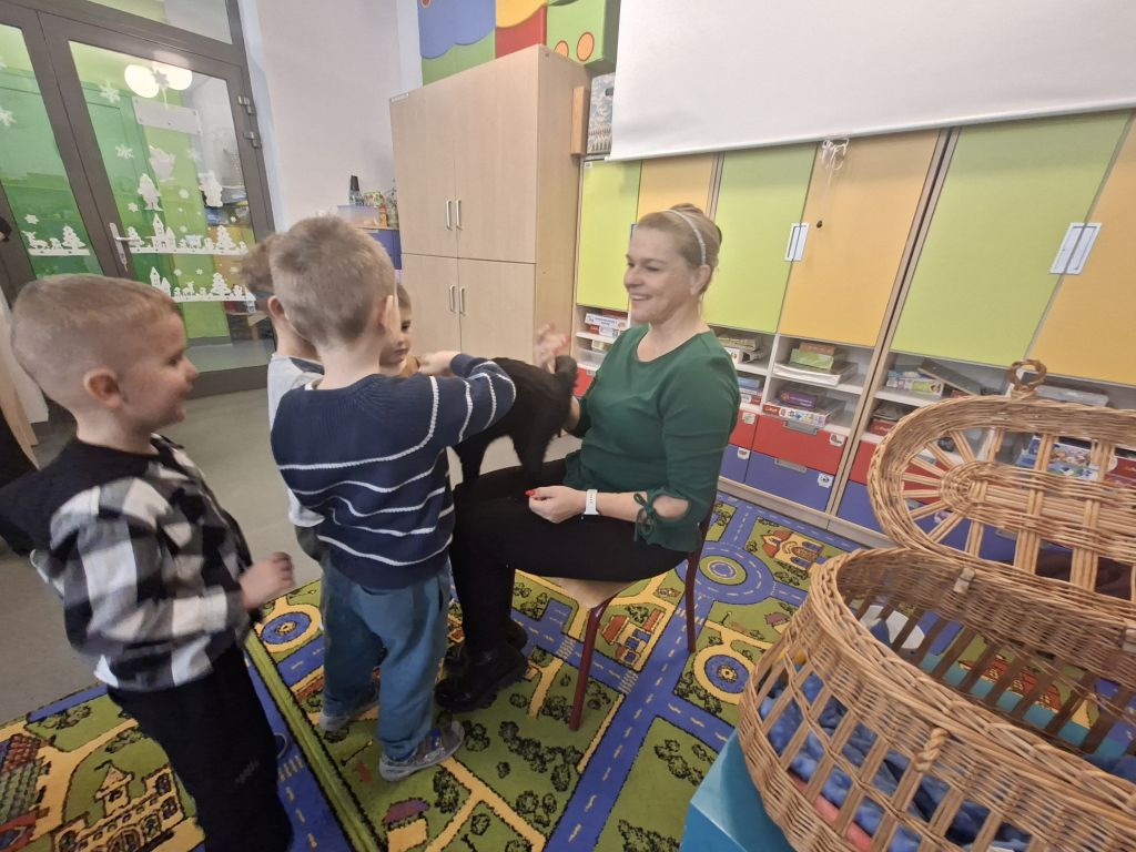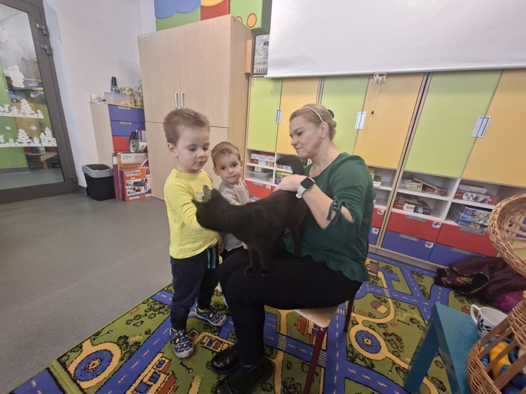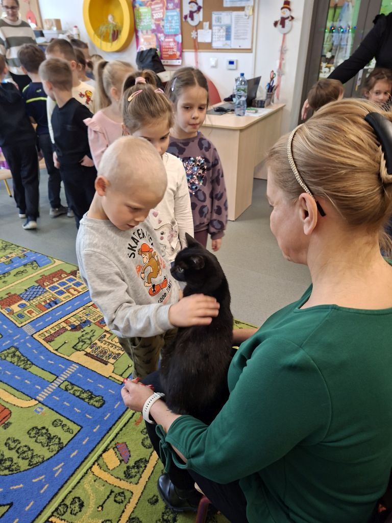 Zwieńczeniem akcji było spotkanie z panią prezes Fundacji, które odbyło się 16 grudnia. Gość specjalny opowiedział dzieciom o swojej pracy, opiece nad zwierzętami oraz potrzebach bezdomnych kotów. Dodatkową atrakcją była obecność kotka, który wzbudził ogromne zainteresowanie i radość wśród przedszkolaków.