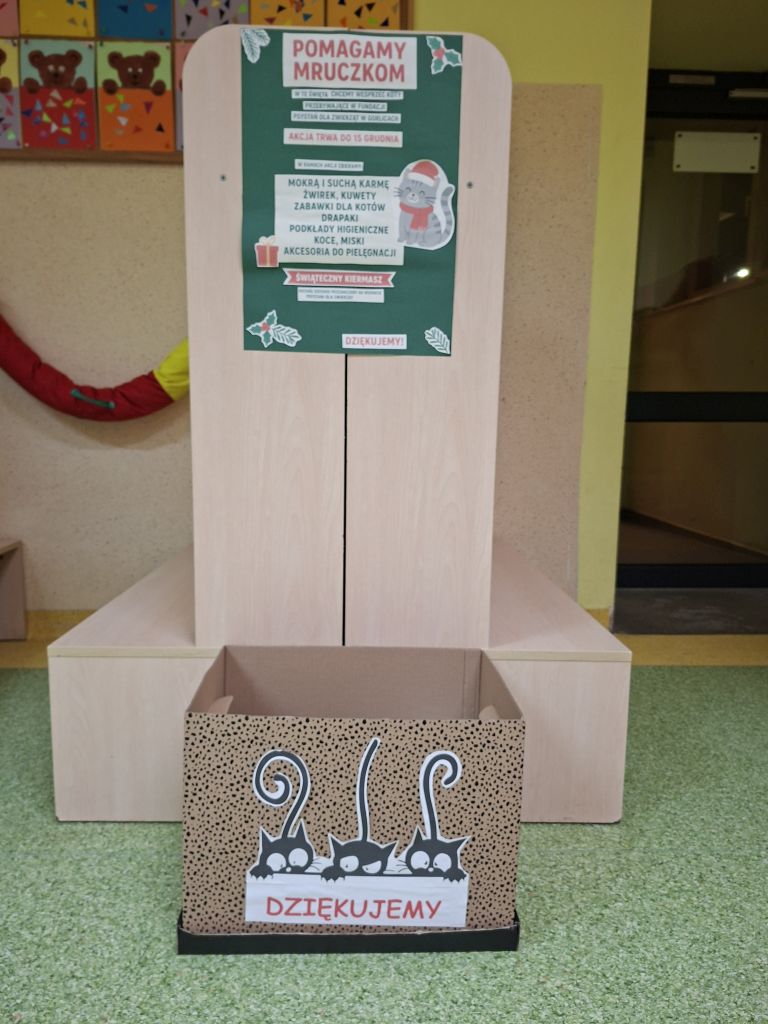 W dniach 27 listopada – 15 grudnia w naszym przedszkolu odbyła się wyjątkowa akcja charytatywna pod hasłem „Pomagamy Mruczkom”, której celem było wsparcie kotów przebywających w Fundacji PSYstań dla zwierząt w Gorlicach.