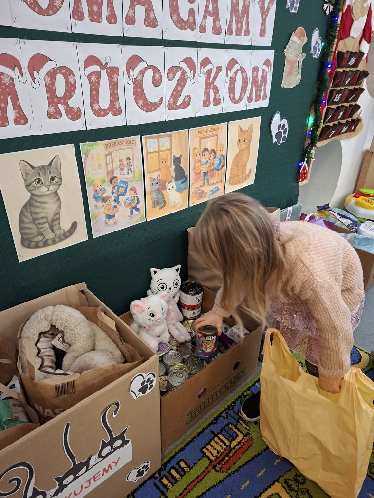 Dzięki ogromnemu zaangażowaniu dzieci, rodziców oraz pracowników przedszkola udało się zebrać liczne dary dla podopiecznych fundacji. Wśród przekazanych rzeczy znalazły się m.in. mokra i sucha karma dla kotów, żwirek, kuwety, zabawki, drapaki, koce, miski, podkłady higieniczne, środki czystości oraz akcesoria do pielęgnacji zwierząt. Wszystkie dary zostały przekazane fundacji i realnie przyczynią się do poprawy losu bezdomnych kotów.