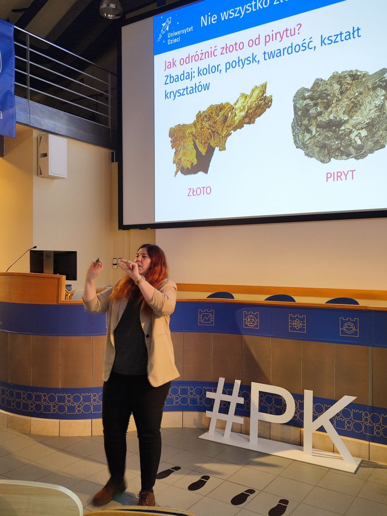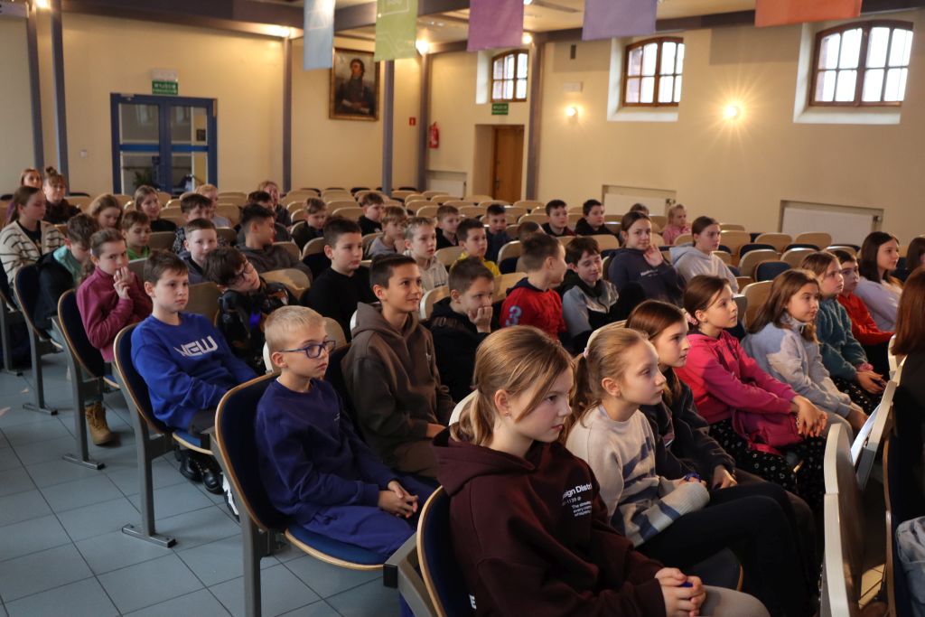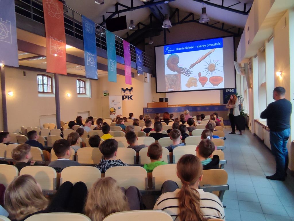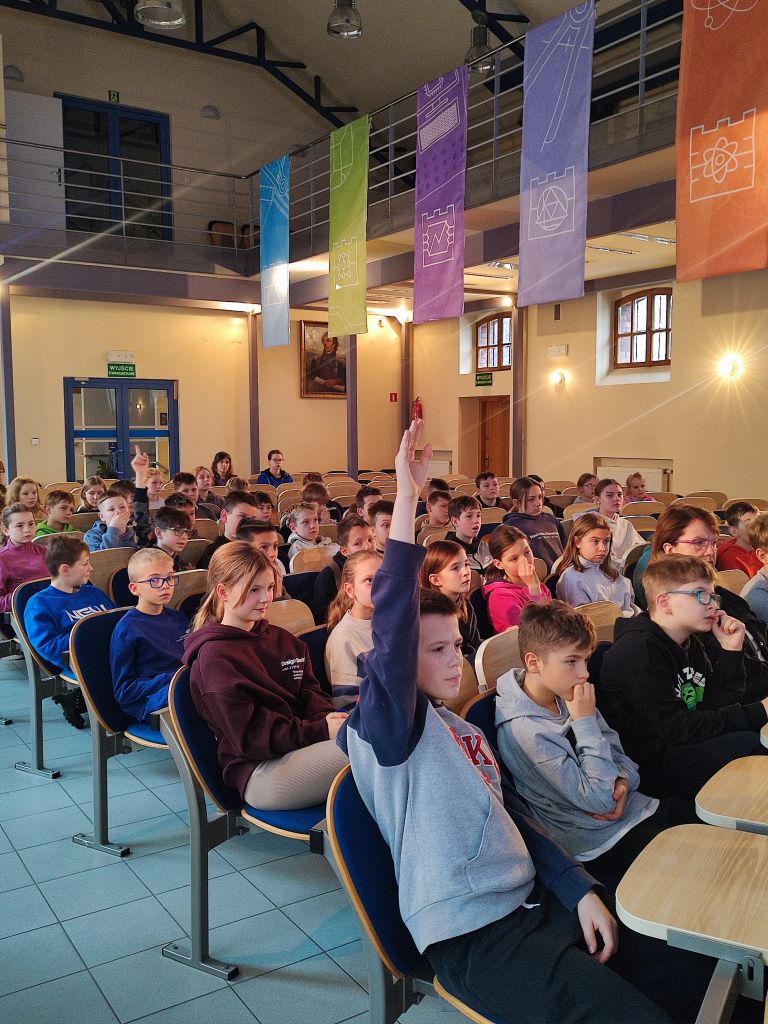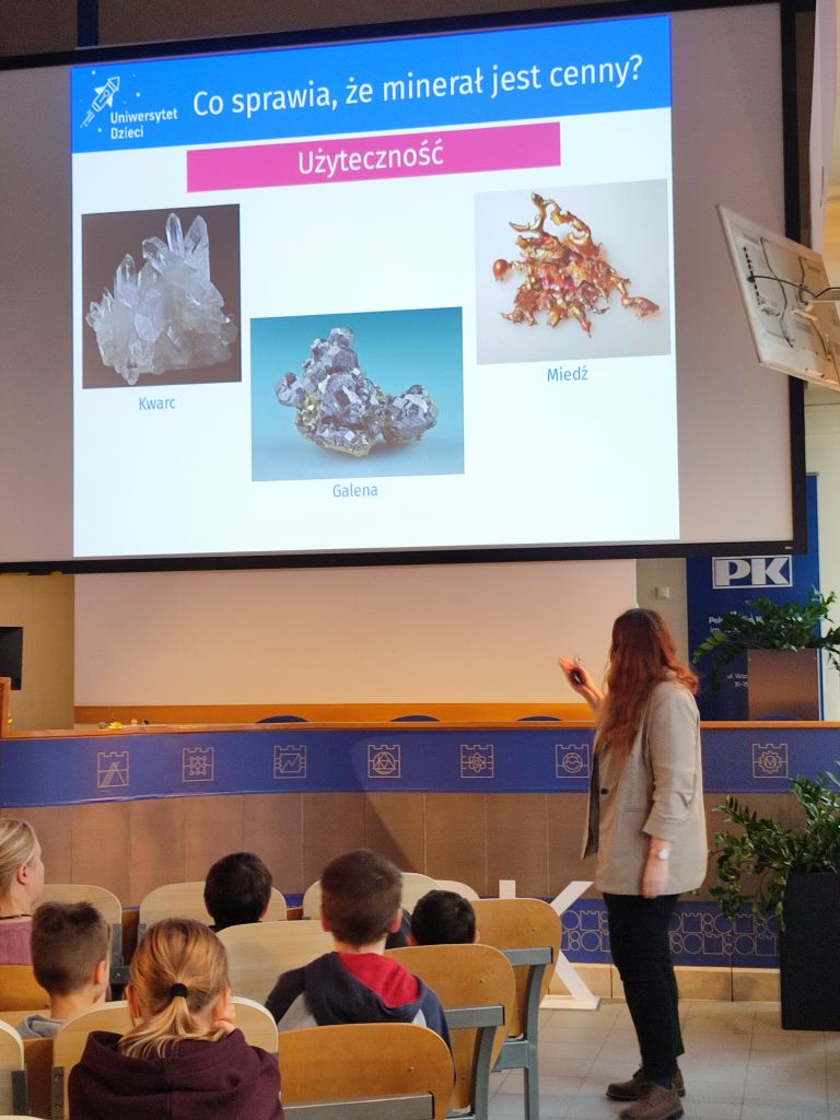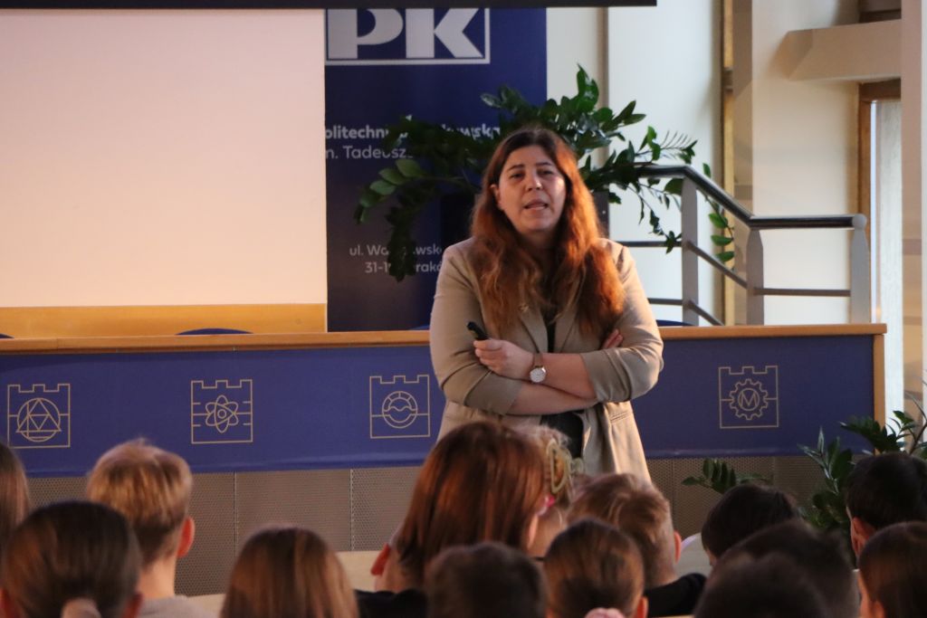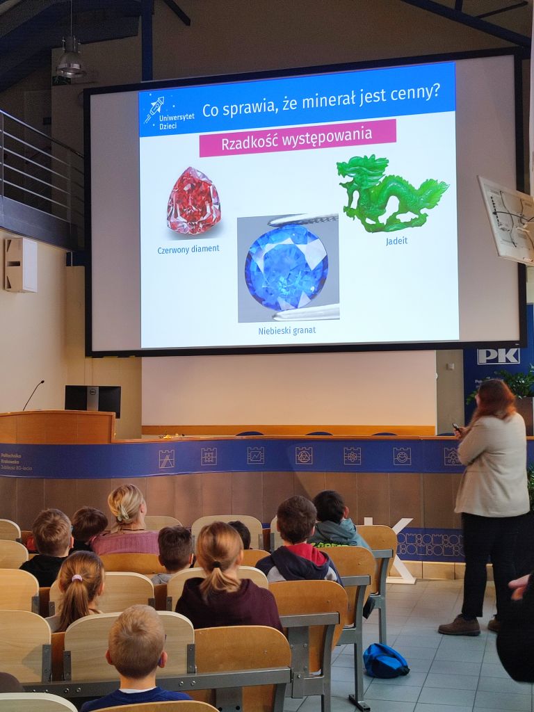 Pobyt na Politechnice Krakowskiej został włączony w realizację projektu „Młodzi w działaniu”, którego celem jest kształtowanie postaw obywatelskich, rozwijanie ciekawości poznawczej oraz budowanie świadomości, że nauka i wiedza są fundamentem odpowiedzialnego uczestnictwa w życiu społecznym. Uczniowie uczestniczyli w wykładzie prowadzonym przez dr inż. Martę Wróbel, zatytułowanym „Złoto, diamenty, kwarc – co jest najcenniejszym skarbem?”. Już sama obecność na uczelni technicznej, możliwość wejścia do auli i bezpośredni kontakt z naukowcem pozwoliły dzieciom poczuć atmosferę świata akademickiego i wcielić się w rolę młodych studentów.