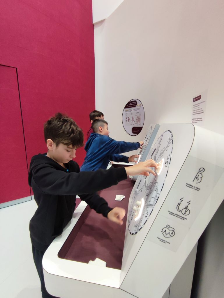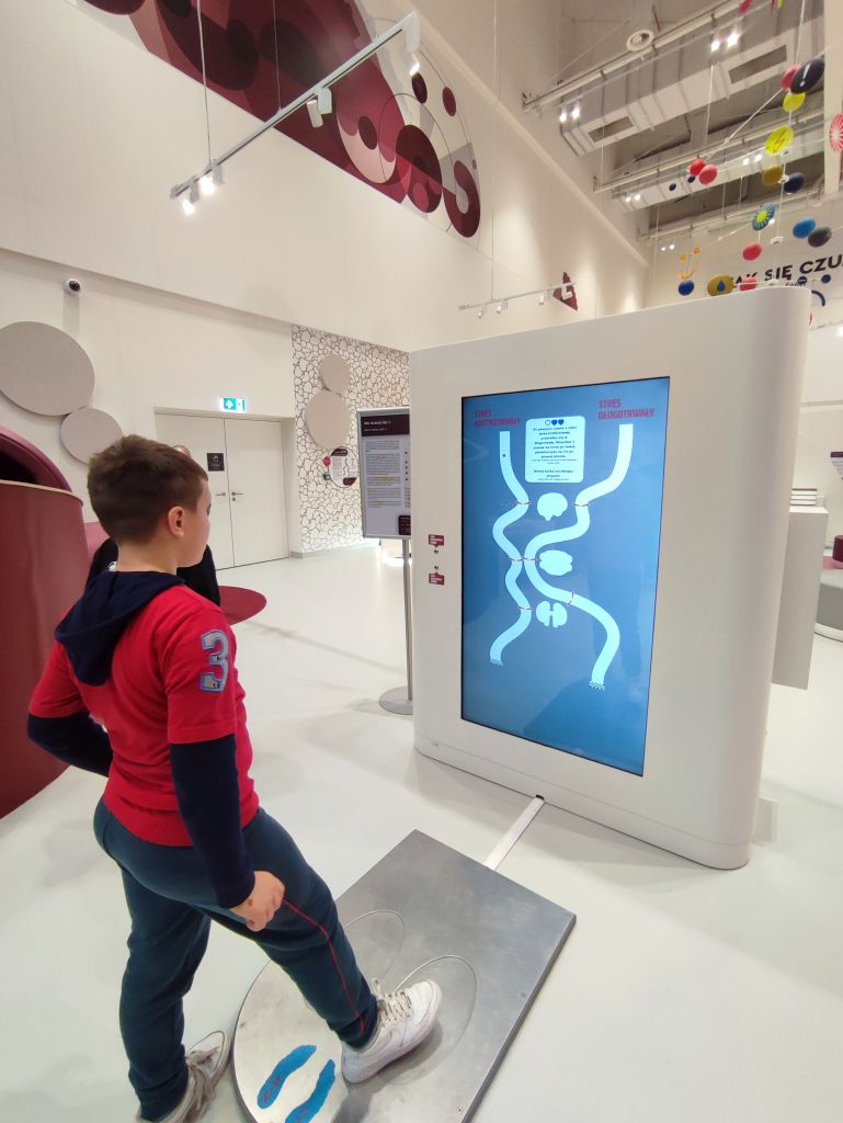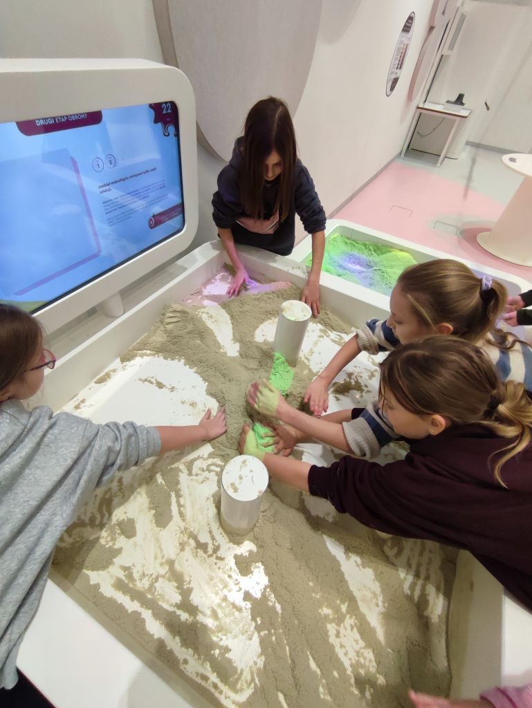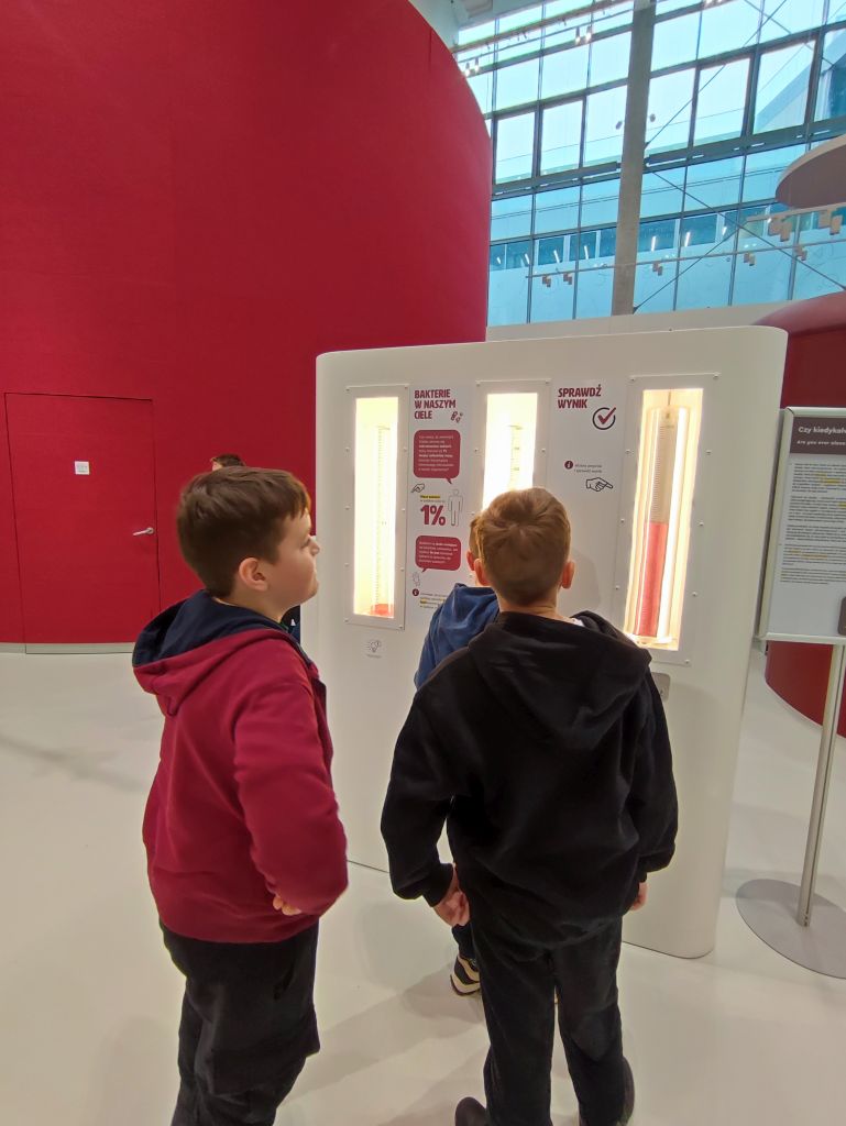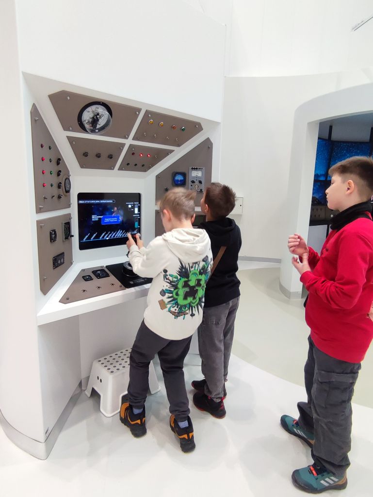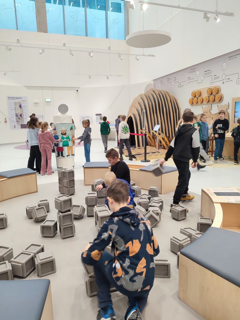 Uczniowie ZSP Libusza w czasie eksplorowania wystawy stałej w Małopolskim Centrum Nauki Cogiteon w Krakowie