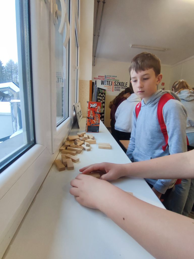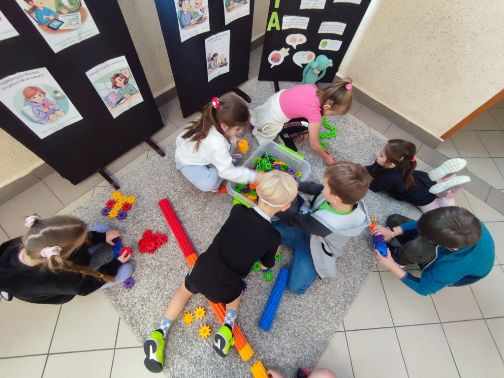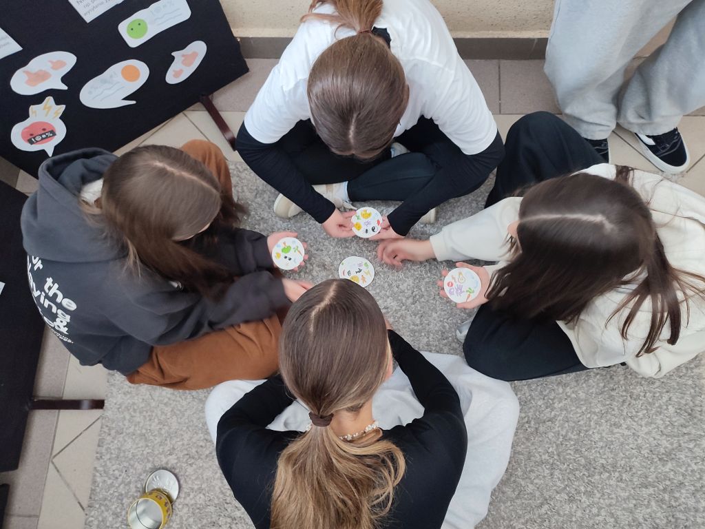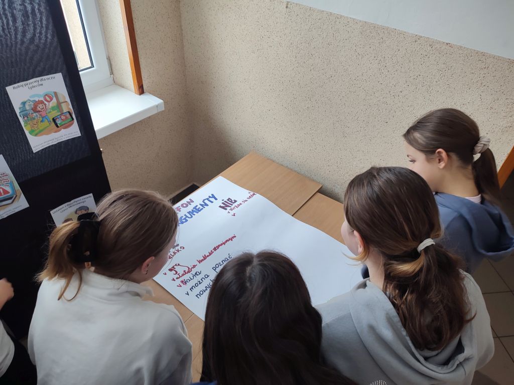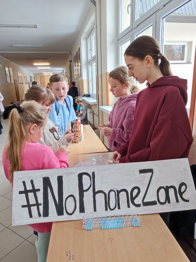 Uczniowie przygotowali szkolne strefy offline, w których czekali na swoich kolegów z planszówkami, grami integracyjnymi i różnymi formami aktywności. Nie zabrakło również kreatywności – lepienia, modelowania, robienia bransoletek czy wspólnego tworzenia. Ogromnym sukcesem okazały się wspólnie opracowane plakaty – Bateria Dobrostanu oraz Telefon na Tak/Nie, na którym uczniowie wypisali plusy i minusy korzystania z telefonu. Wspólna analiza doprowadziła ich do ważnego wniosku: telefon nie jest jedyną atrakcyjną rzeczą w ich zasięgu, a wiele ciekawych aktywności do tej pory zwyczajnie ich omijało. Ich odpowiedzi i reakcje były niezwykle budujące.