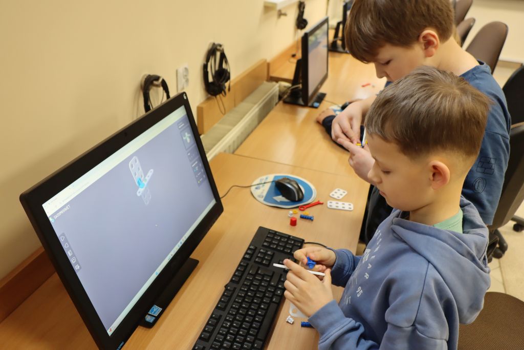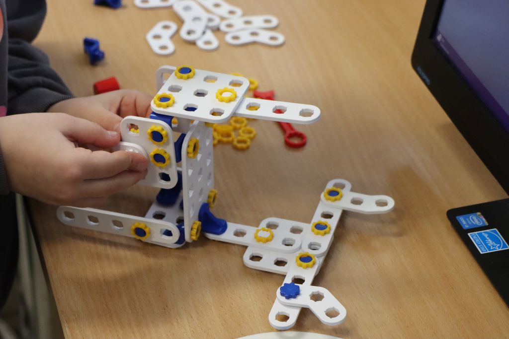 Uczniowie korzystali również z klocków edukacyjnych SkriKit, które zostały zakupione z budżetu szkoły. SkriKit to zaawansowany zestaw konstrukcyjny wspierający naukę poprzez tworzenie różnorodnych modeli przestrzennych i mechanicznych. Budowanie z elementów SkriKit: