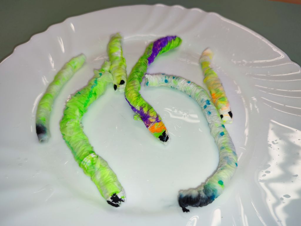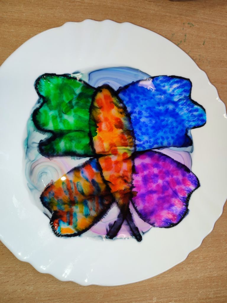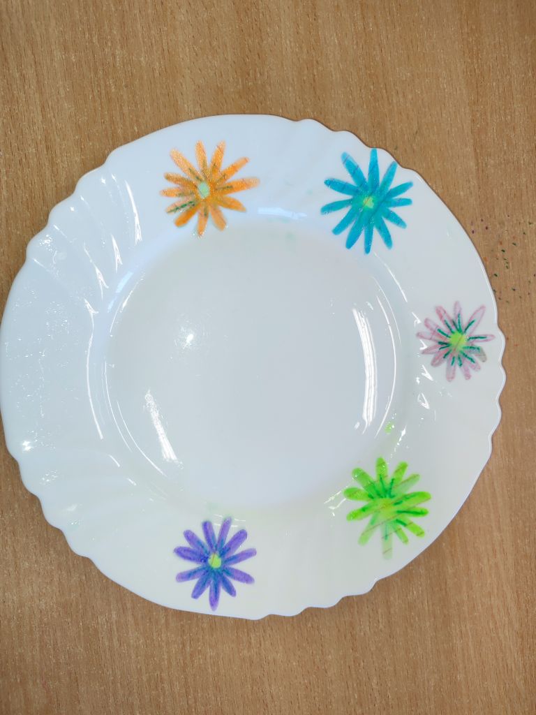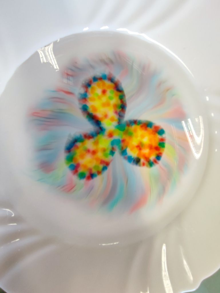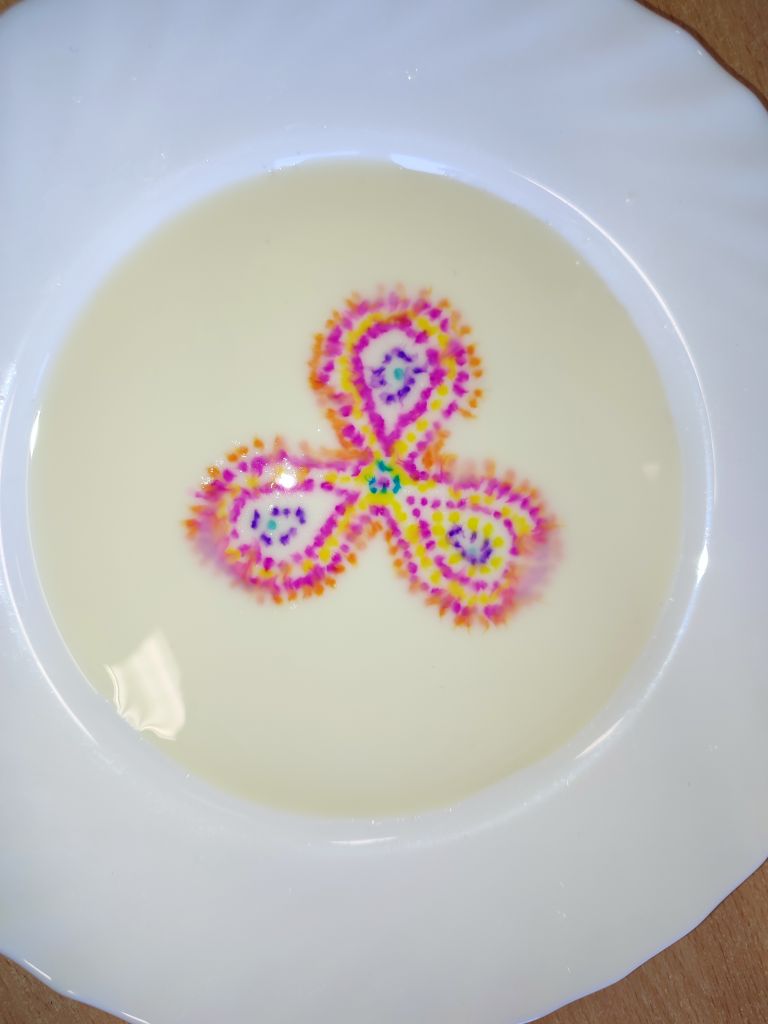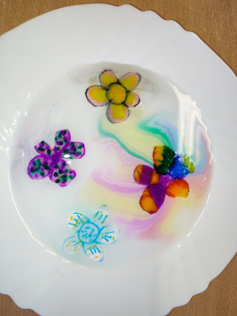 1.    Tęcza w piance do golenia – dzieci wlewały barwniki spożywcze na powierzchnię pianki do golenia i obserwowały, jak kolory się mieszają, tworząc dynamiczne wzory. Doświadczenie pokazywało ruch cząsteczek i proces dyfuzji w zabawny, wizualny sposób.
