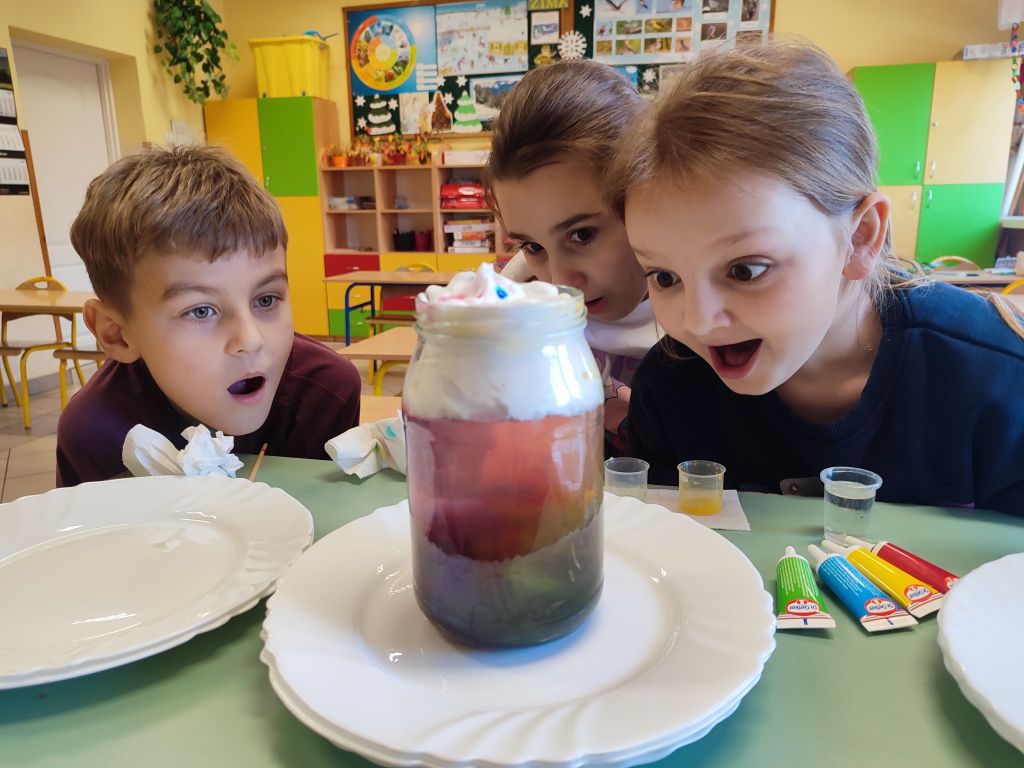 Dzięki tym mini-warsztatom chemicznym dzieci poznawały podstawy procesów fizycznych i chemicznych, rozwijały ciekawość naukową oraz zdolność do eksperymentowania w bezpieczny i twórczy sposób.