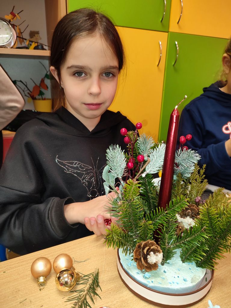 Świąteczne Laboratorium Magicznych Wynalazków dawało dzieciom szansę na tworzenie kreatywnych stroików, ozdób i dekoracji inspirowanych tradycjami Polski i Europy. Wykorzystywały przy tym proste mechanizmy, światło LED oraz elementy papieru, drewna i filcu. Podczas eksperymentów dzieci poznawały symbole i zwyczaje różnych krajów, rozwijały myślenie inżynierskie i projektowe, a swoje prace prezentowały na mini wystawie świetlicowej, wzbudzając zachwyt rodziców.