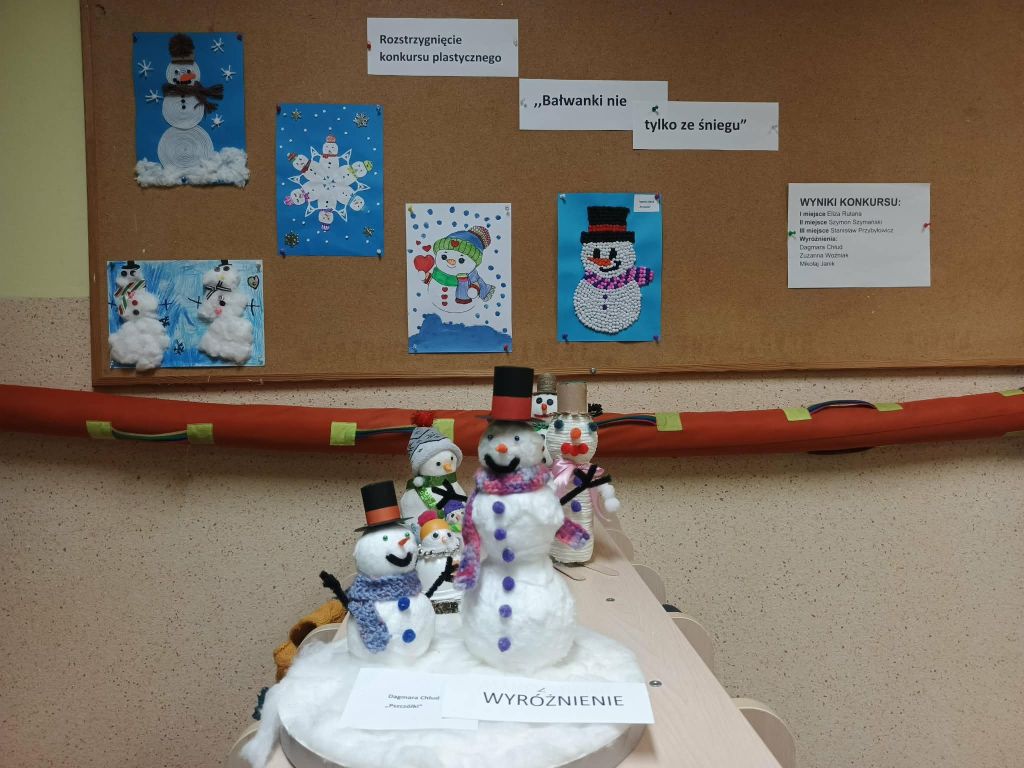 Dnia 27.02.2026 r. nastąpiło rozstrzygniecie konkursu: Bałwanki nie tylko ze śniegu którego celem było rozwijanie kreatywności oraz aktywności twórczej dzieci Konkurs skierowany był do dzieci w wieku przedszkolnym. Wpłynęło na niego 17 prac.
