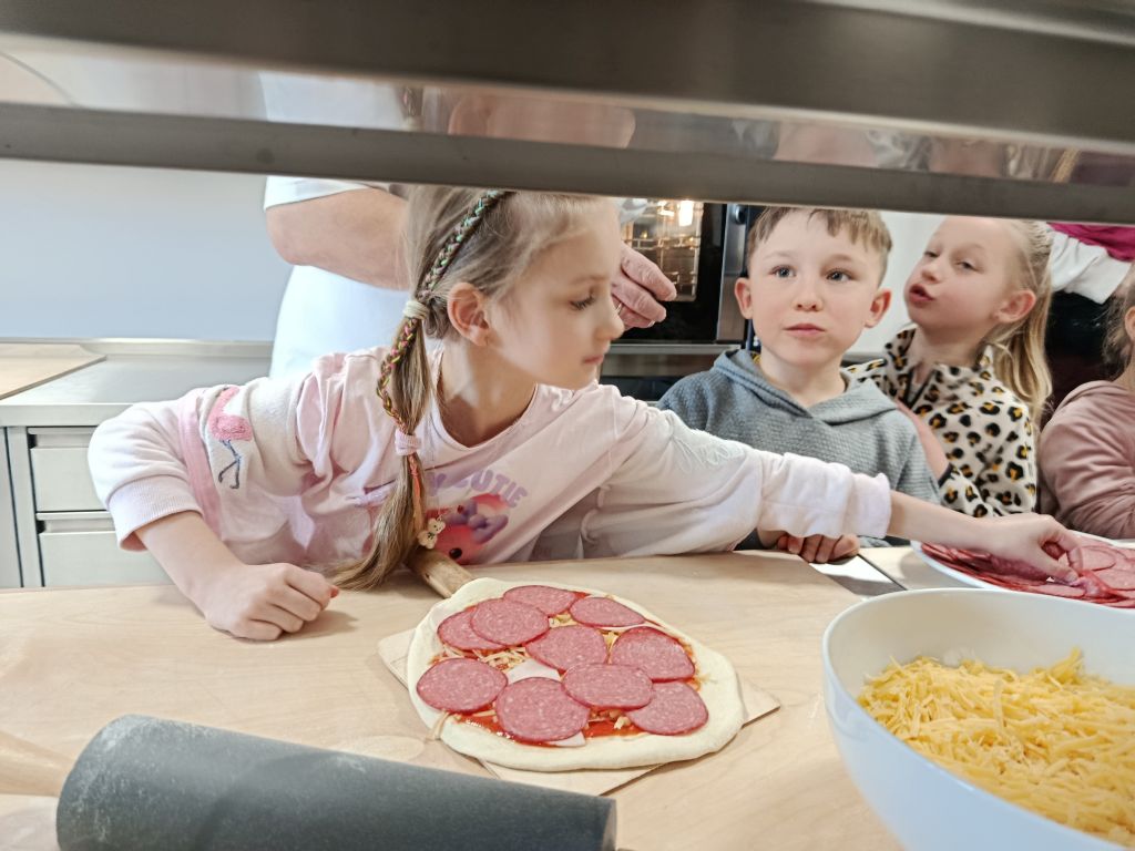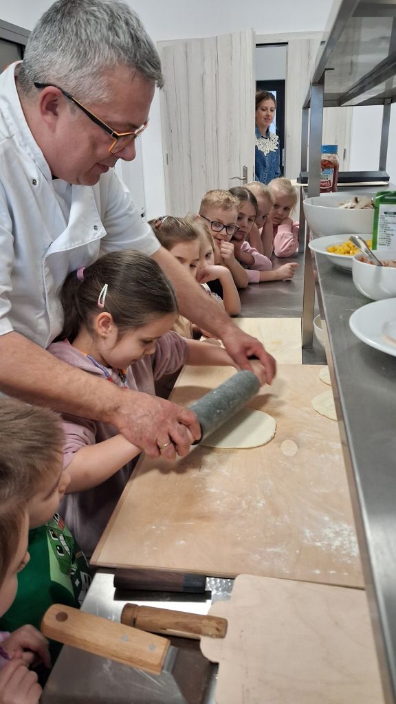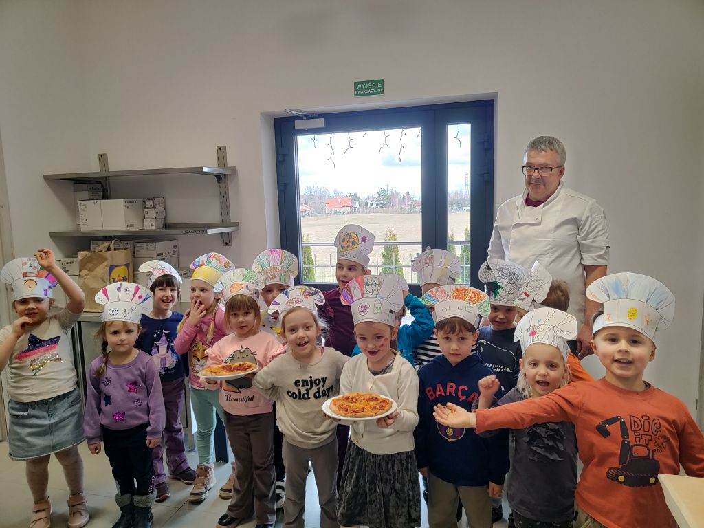 W minionym tygodniu 24 lutego nasze przedszkolaki z grup: „Pszczółki” i „Skrzaty” oraz 2 marca „Biedronki” i „Sówki” zamieniły się w prawdziwych szefów kuchni! Wszystko za sprawą wyjątkowych warsztatów kulinarnych „Mały Mistrz Pizzy”, które dostarczyły nam mnóstwo frajdy i pysznych zapachów. Dzień był pełen atrakcji, a nasi młodzi kucharze przeszli profesjonalne szkolenie od A do Z. Zanim dzieci przystąpiły do pracy z ciastem, samodzielnie przygotowały i ozdobiły swoje autorskie czapki kucharskie. Każdy przedszkolak miał też okazję samodzielnie skomponować pizzę, dobierając ulubione składniki i ucząc się tajników włoskiej kuchni.