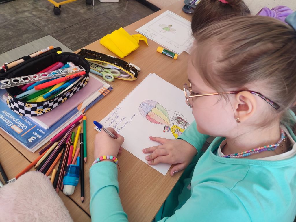 Najmłodsi uczestnicy wzięli udział w lekcji pt. „Kolory słów – kiedy słowa ranią, a kiedy pomagają?”. Podczas zajęć dzieci poznały bohaterów opowiadania, którzy pomogli im zrozumieć, że słowa mają ogromną moc – mogą sprawić komuś radość, ale mogą też zranić. Przedszkolaki uczyły się rozpoznawać emocje, nazywać uczucia oraz zastanawiały się, jak mówić do innych, aby budować dobre relacje. Zajęcia miały formę opowieści, zabawy i aktywności plastycznej, dzięki czemu dzieci w przystępny sposób poznawały zasady życzliwej komunikacji.