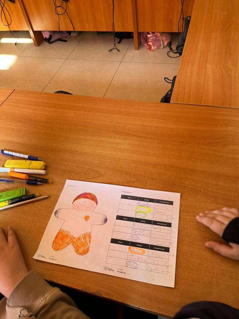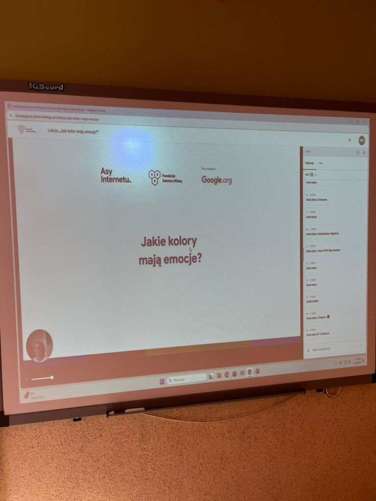 Starsze klasy uczestniczyły w zajęciach „Jaki kolor mają emocje?”, podczas których uczniowie rozmawiali o tym, jak komunikacja w Internecie wpływa na nasze samopoczucie i relacje z innymi. Uczniowie zastanawiali się, jak słowa – zarówno wypowiadane, jak i pisane w sieci – mogą oddziaływać na emocje innych osób. Zajęcia pomogły im zrozumieć, że nawet krótkie wiadomości czy komentarze mogą mieć duży wpływ na innych użytkowników Internetu.