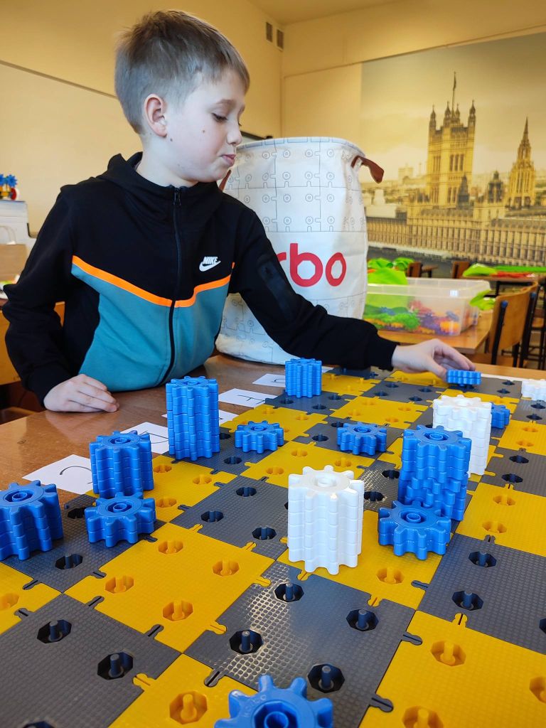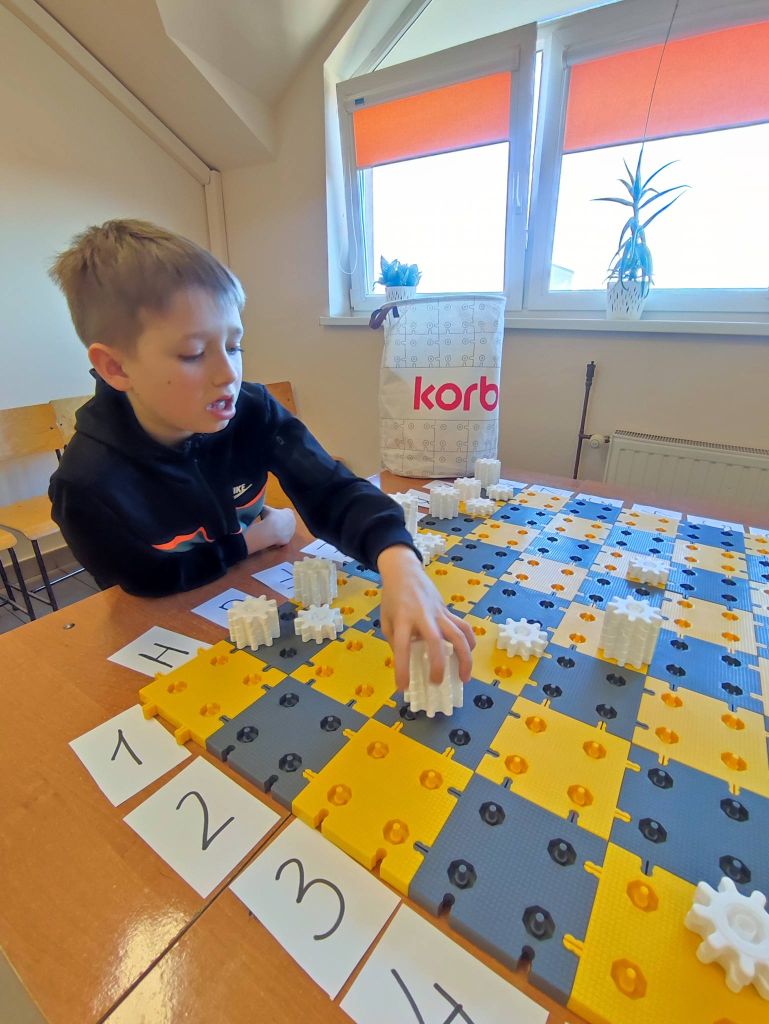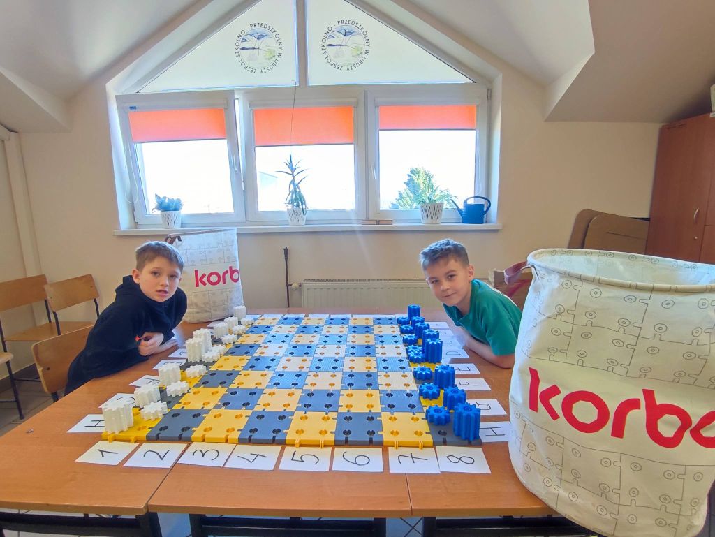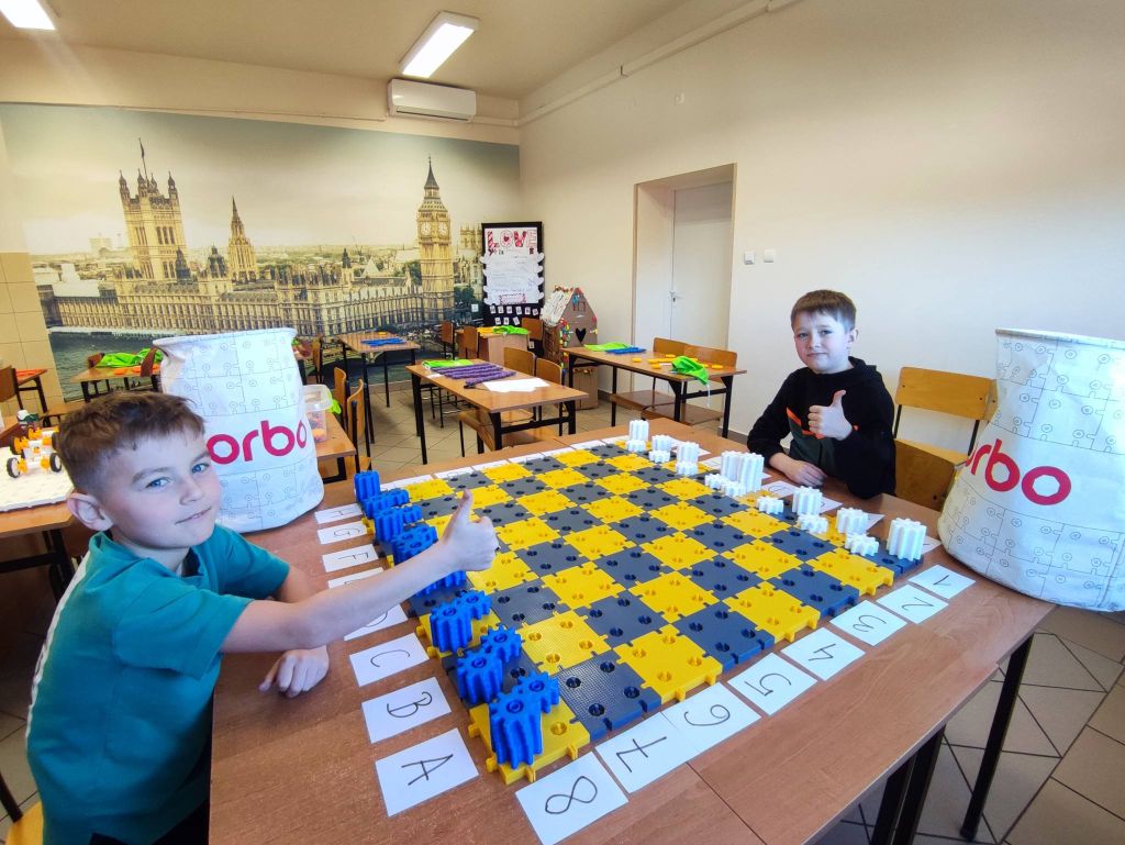 Projekt pokazał, jak naturalnie można połączyć konstrukcję, matematykę, język obcy i myślenie strategiczne. Zajęcia w ramach programu Kolorowa matematyka z Korbo stały się przestrzenią twórczego działania, w której uczniowie rozwijali kompetencje logiczne, przestrzenne i komunikacyjne, pracując w atmosferze współpracy i kreatywnej swobody.