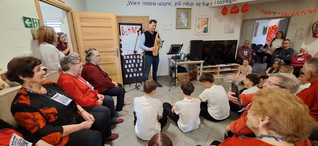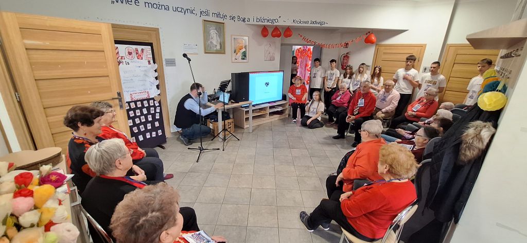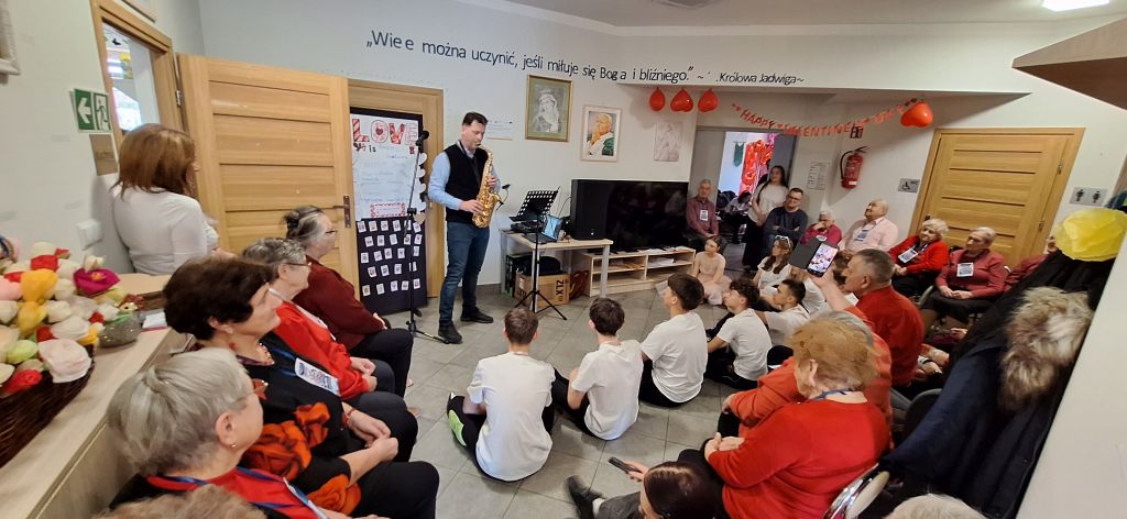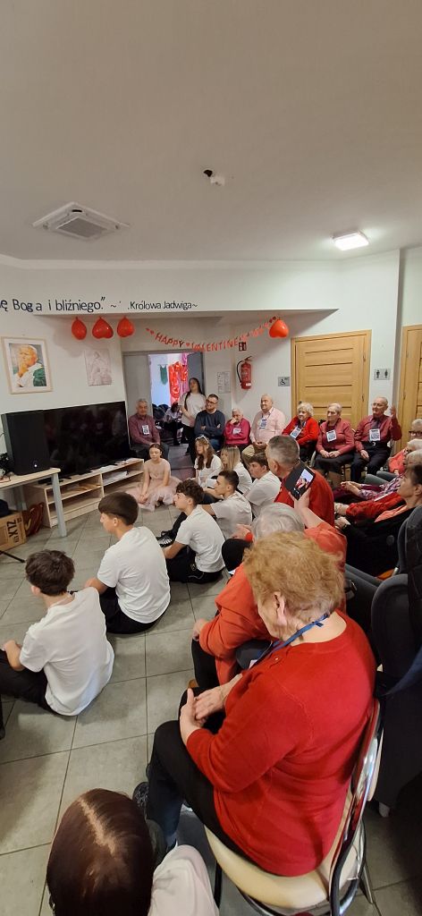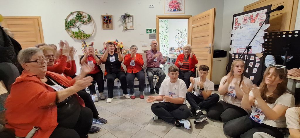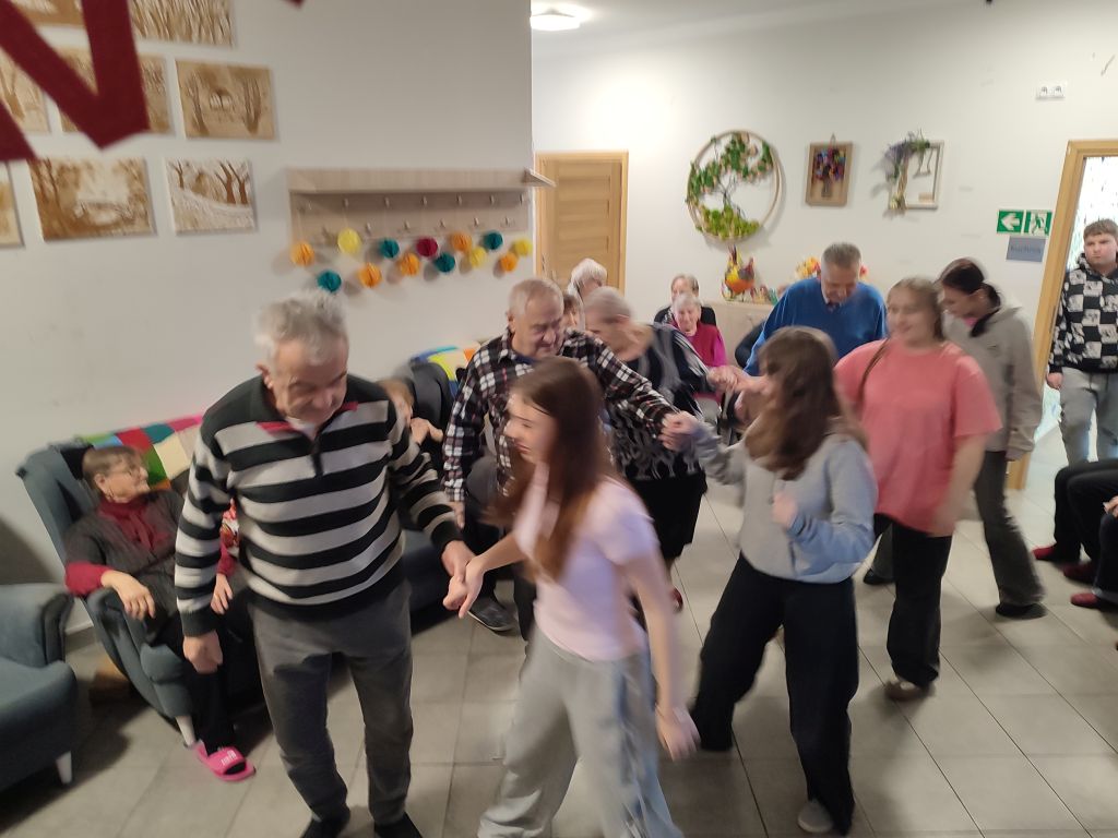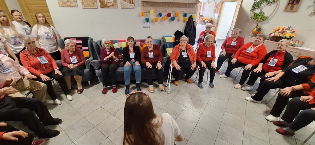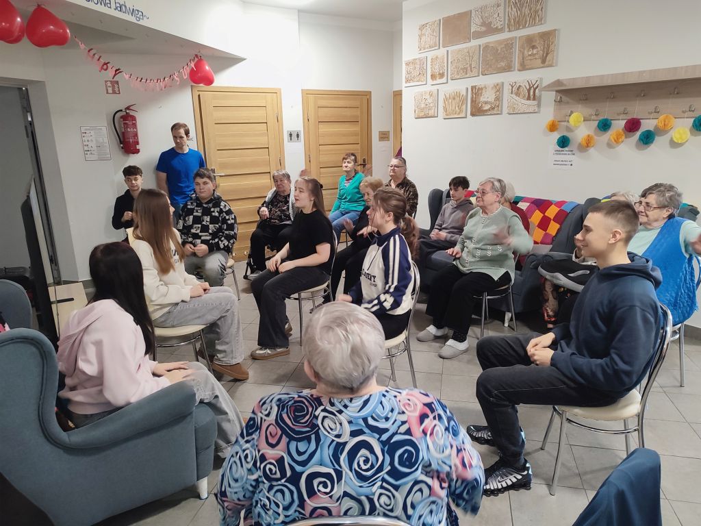 Ważnym elementem spotkania była również przestrzeń do rozmów o wartościach. Uczestnicy zastanawiali się nad tym, czym jest miłość, przyjaźń, życzliwość i wzajemny szacunek. Seniorzy dzielili się swoją życiową mądrością, a młodzi ludzie z ogromnym zainteresowaniem słuchali ich refleksji i rad. Były to chwile bardzo autentyczne i poruszające.