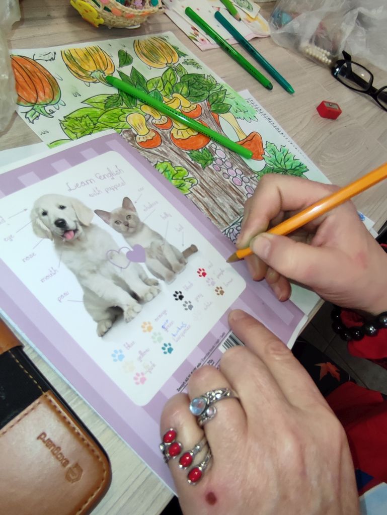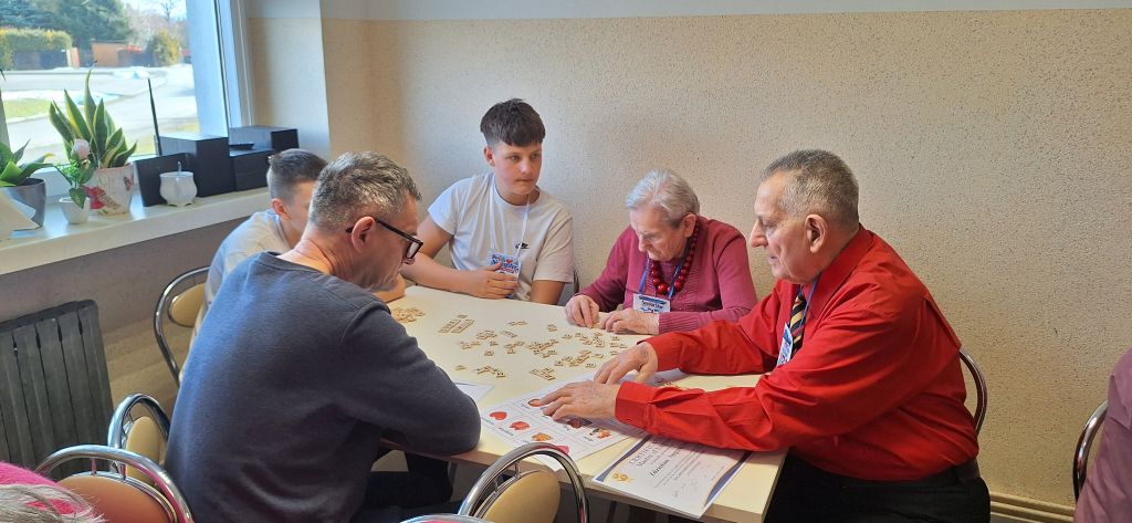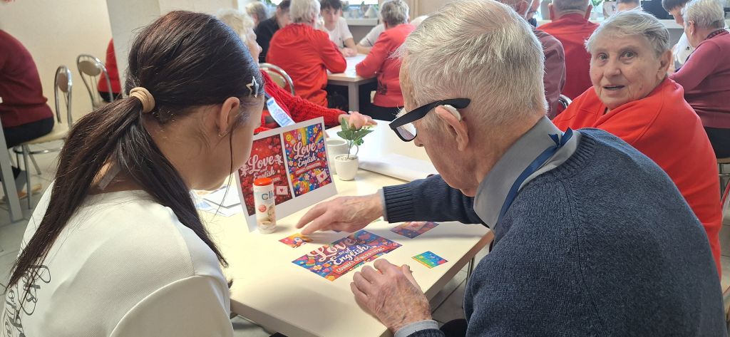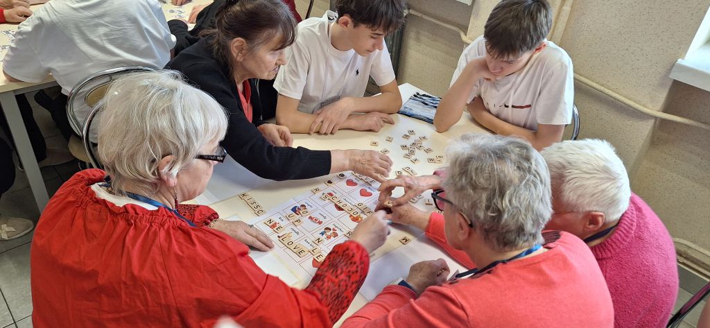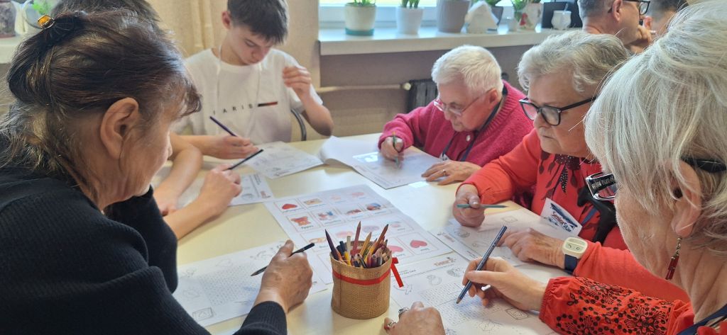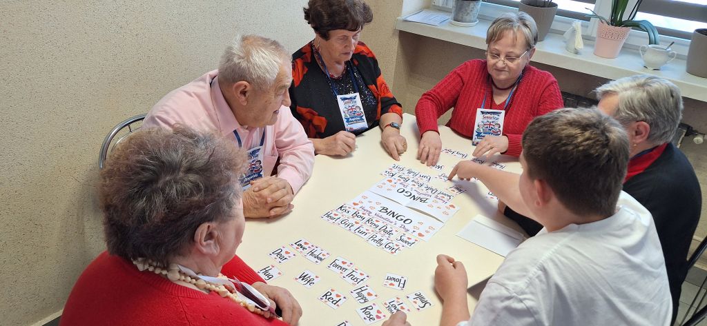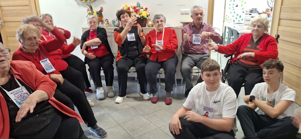 Kolejne działania pokazały, że nauka języka może odbywać się w sposób naturalny, poprzez wspólne doświadczenie i zabawę. Uczniowie i seniorzy pracowali razem, pomagając sobie nawzajem, ucząc się nowych słów, ćwicząc pamięć i komunikację. Wspólne zadania sprzyjały integracji, rozwijały współpracę i pokazywały, że nauka może być radosna i inspirująca.