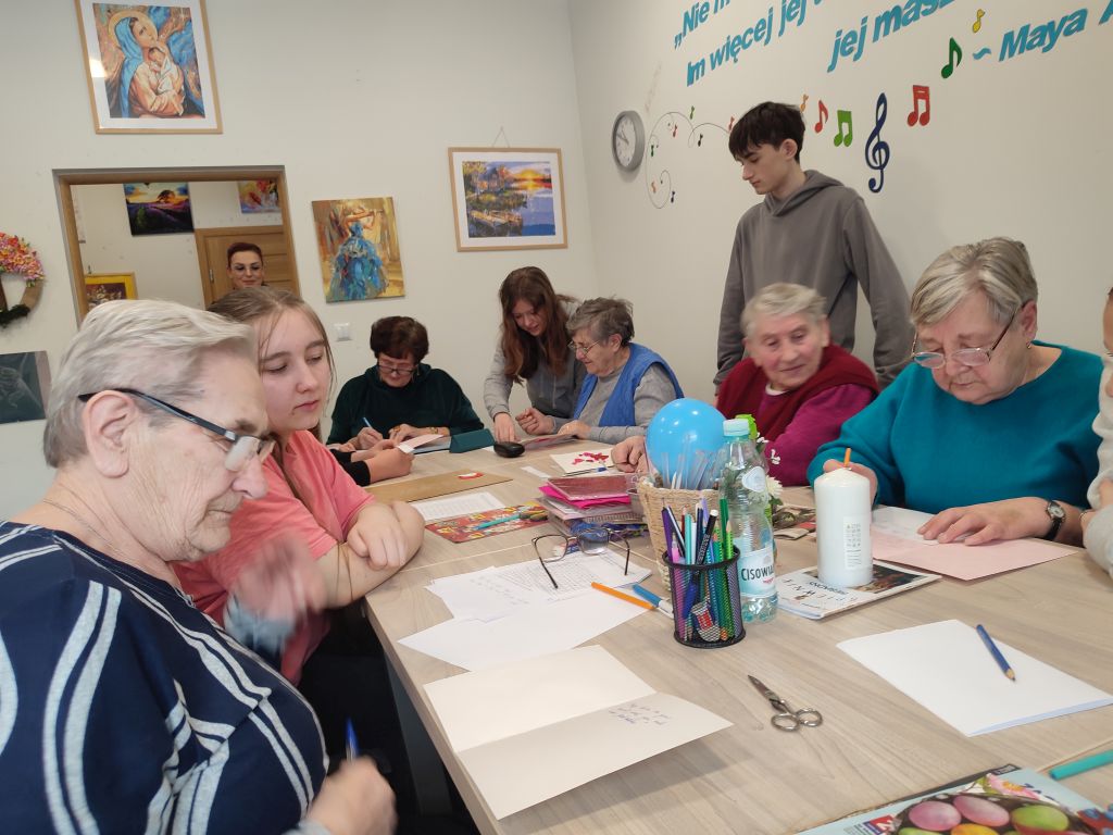 Szczególnym doświadczeniem była także wspólna praca twórcza i działania wymagające współdziałania. Uczniowie i seniorzy wspólnie tworzyli, rozmawiali, dzielili się swoimi pomysłami i doświadczeniami. Takie momenty budowały prawdziwą więź i pozwalały zobaczyć, jak wiele można się od siebie nawzajem nauczyć.