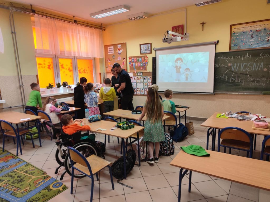 Zajęcia rozpoczęły się od obejrzenia filmu edukacyjnego o wiośnie, który wprowadził uczniów w tematykę zmian zachodzących w przyrodzie. Dzieci z dużym zainteresowaniem obserwowały pierwsze wiosenne kwiaty, powracające ptaki oraz budzącą się do życia naturę.