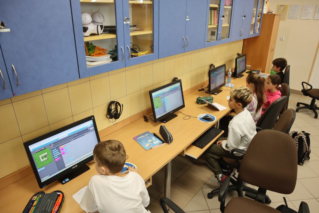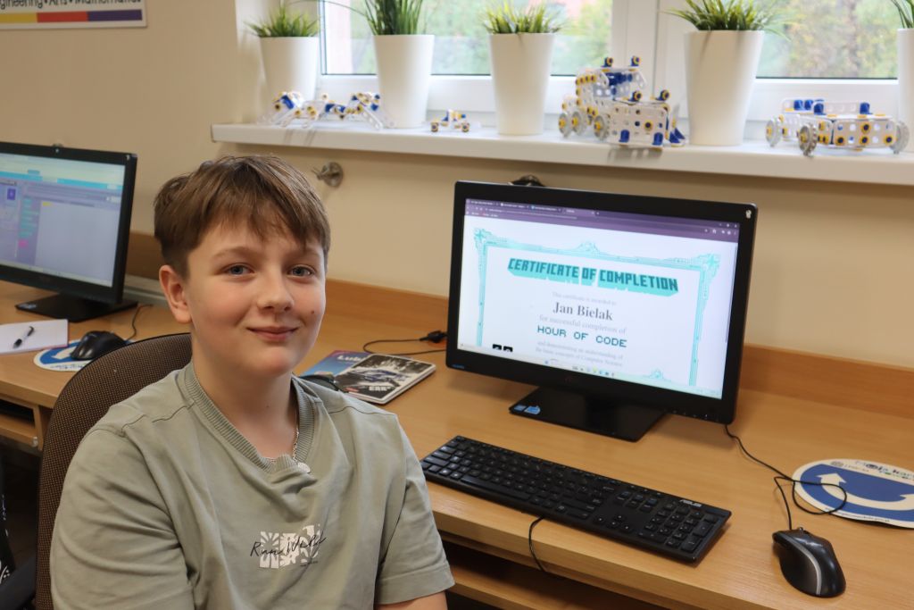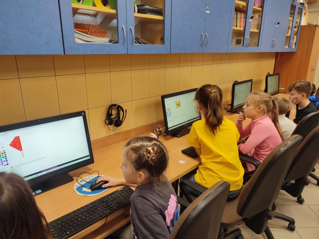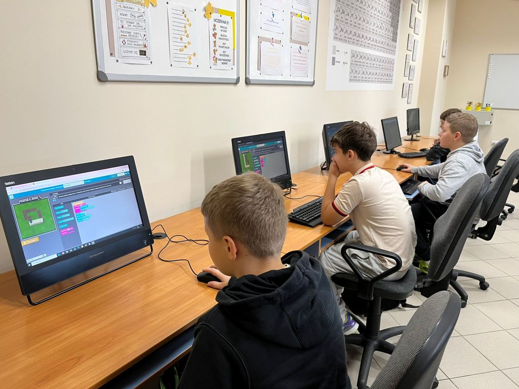 Uczniowie klas IV–VI odkrywali tajniki programowania na stronie code.org. Dzięki interaktywnym kursom takim jak „Minecraft”, „AI dla oceanów”, „Potańcówka” czy „Gwiezdne wojny”, uczestnicy rozwijali umiejętność myślenia algorytmicznego, rozwiązywania problemów i logicznego planowania działań. Każdy uczeń miał okazję zdobyć podstawową wiedzę z zakresu programowania w atrakcyjnej, multimedialnej formie.