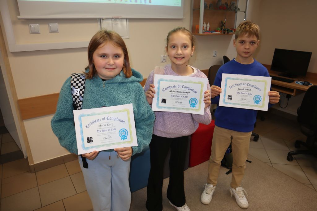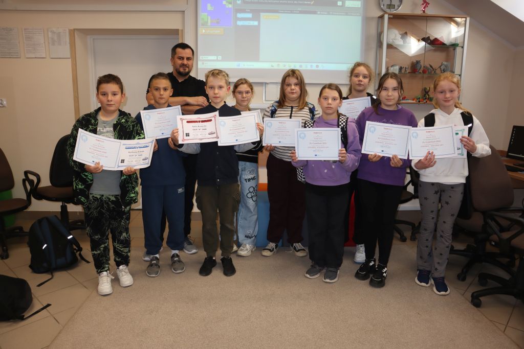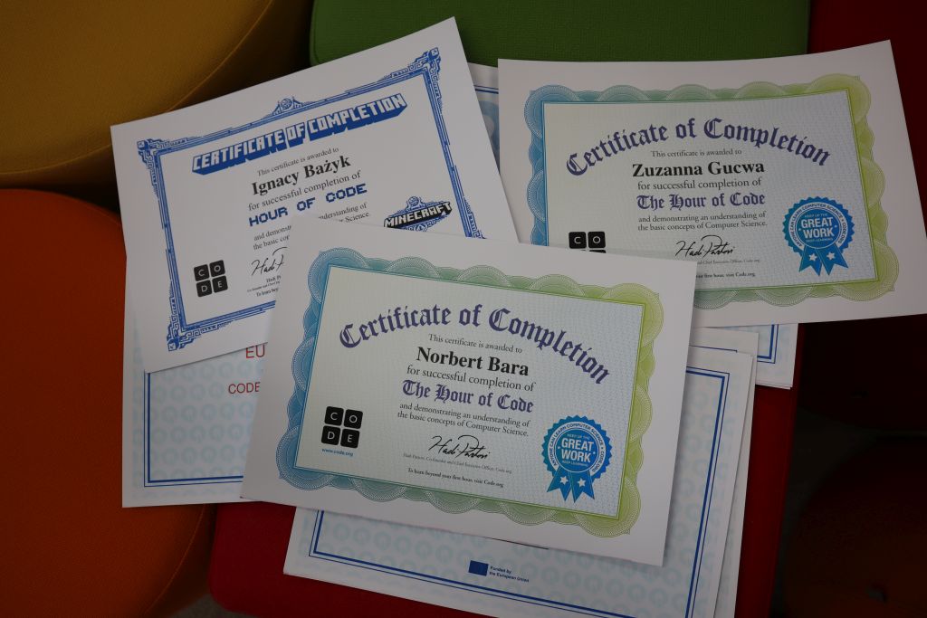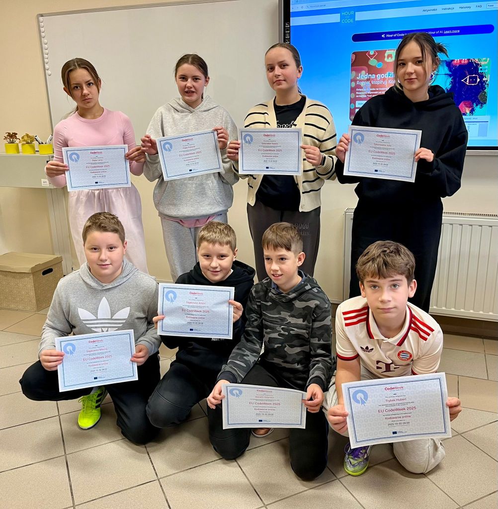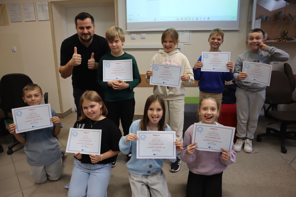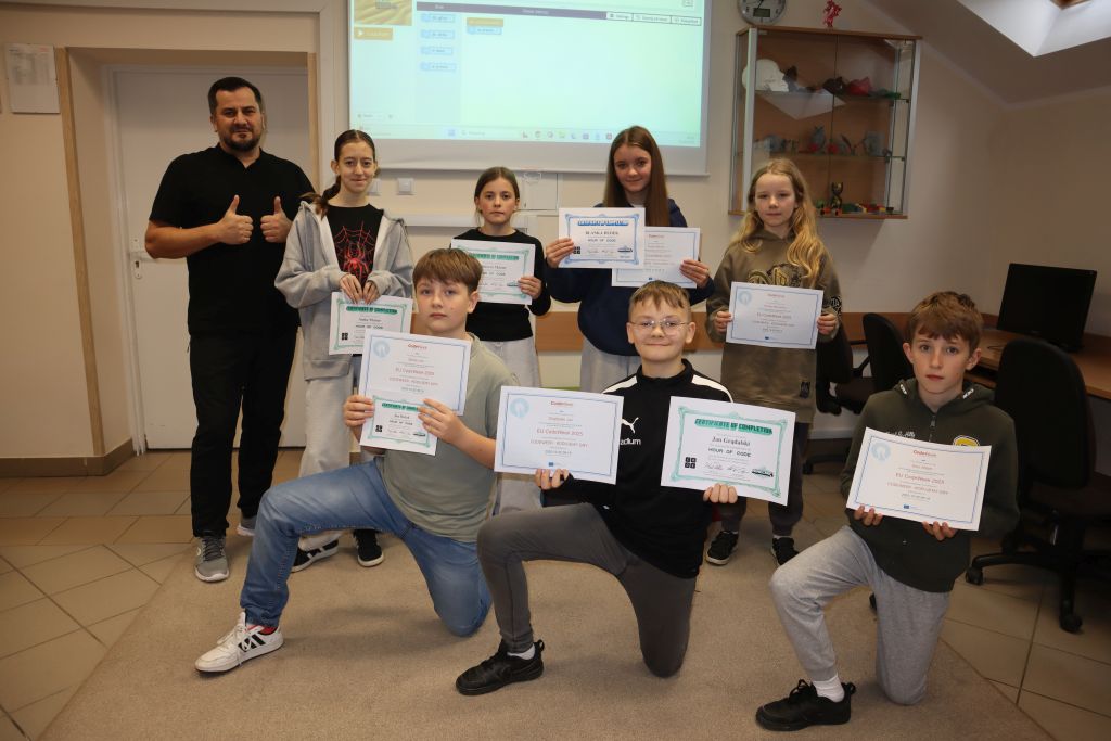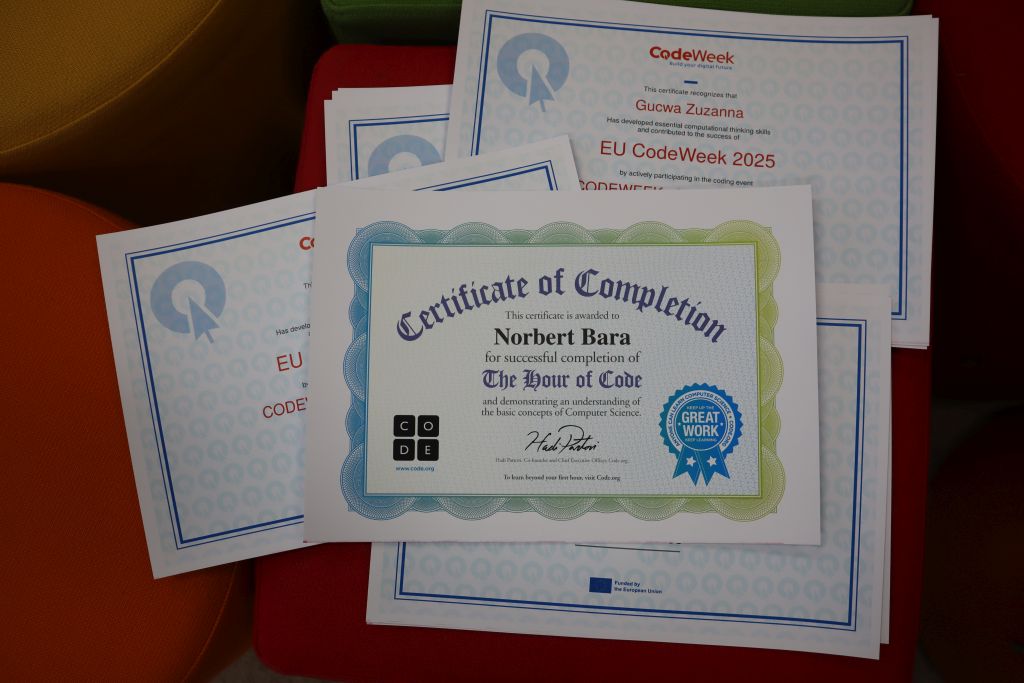 Na zakończenie wszyscy uczestnicy otrzymali imienne certyfikaty uczestnictwa w Tygodniu Kodowania, a najlepsi – dodatkowe wyróżnienia za ukończenie wszystkich poziomów kursów. Szkoła również uzyskała certyfikat organizacji "Tygodnia kodowania" w roku 2025.